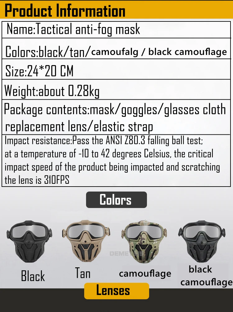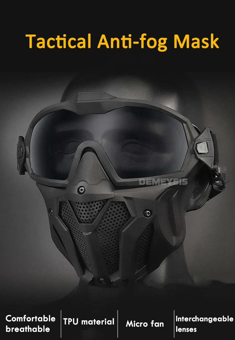 Máscara táctica antivaho con gafas desmontables: protección facial completa para airsoft y paintball
