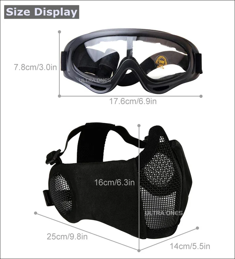 Juego de máscara y gafas tácticas: certificación ANSI Z80.3