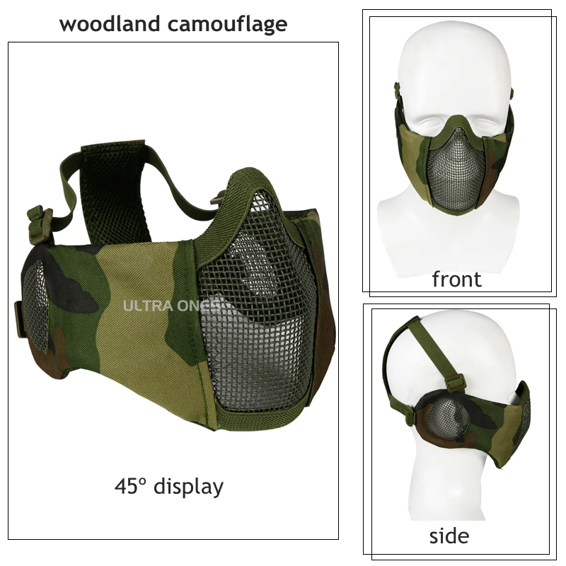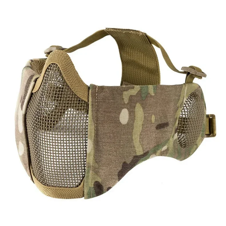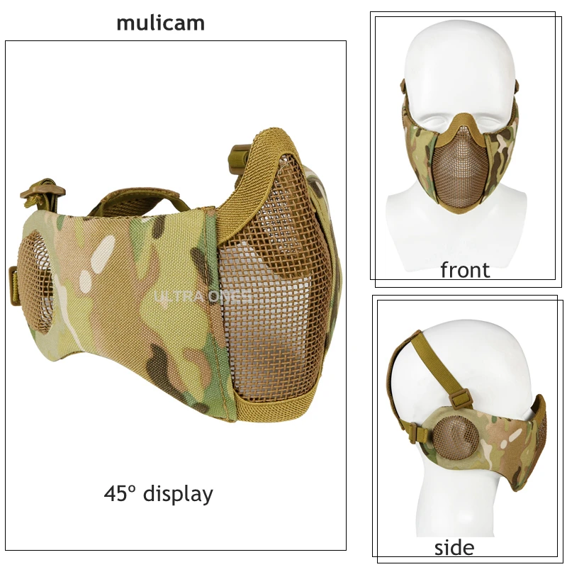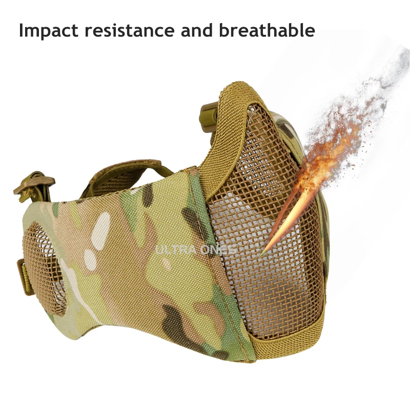 ● Protector auditivo de malla con correas ajustables.Traje para airsoft BB gun close quarter Battle Cosplay y fiesta.