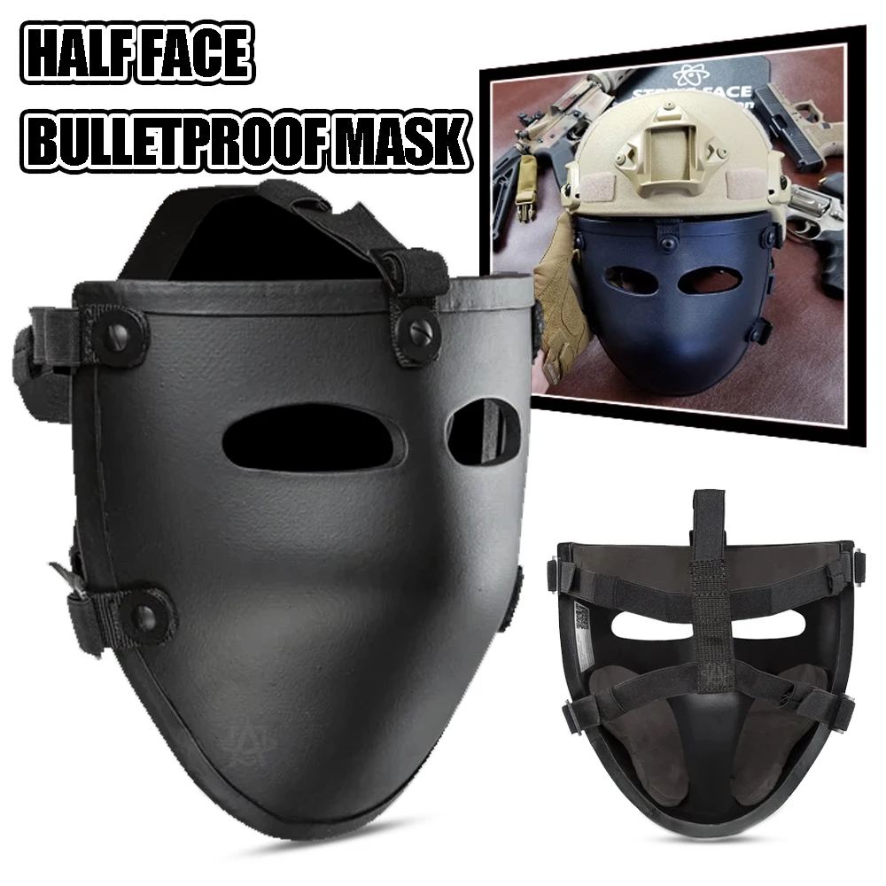 Máscara antibalas de media cara NIJ nivel IIIA+ para cascos Airsoft Pantalla facial de aramida PE a prueba de espinas y protección antibalas