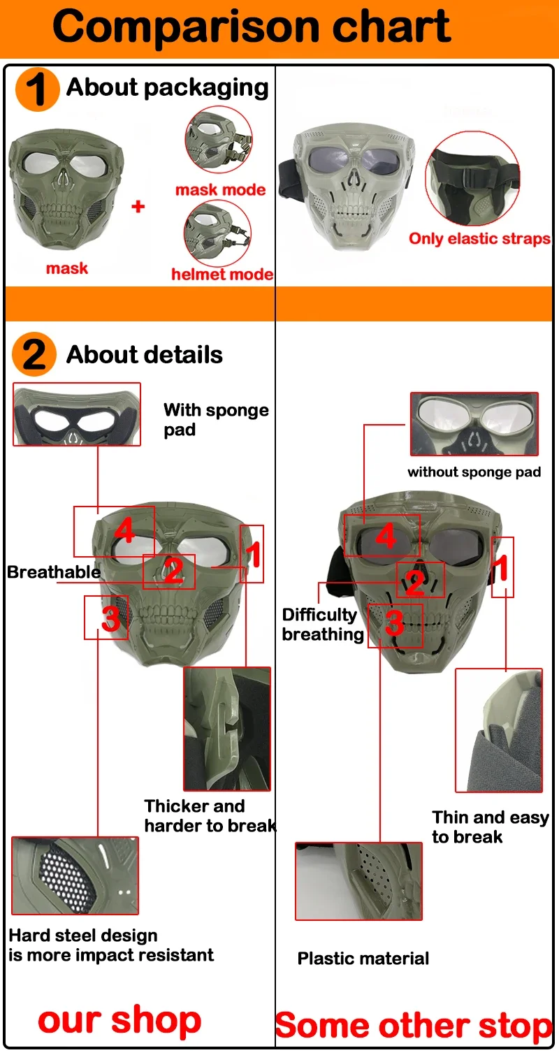 ☠️ Máscara táctica de calavera| Uso de modo dual| Opciones de 5 colores