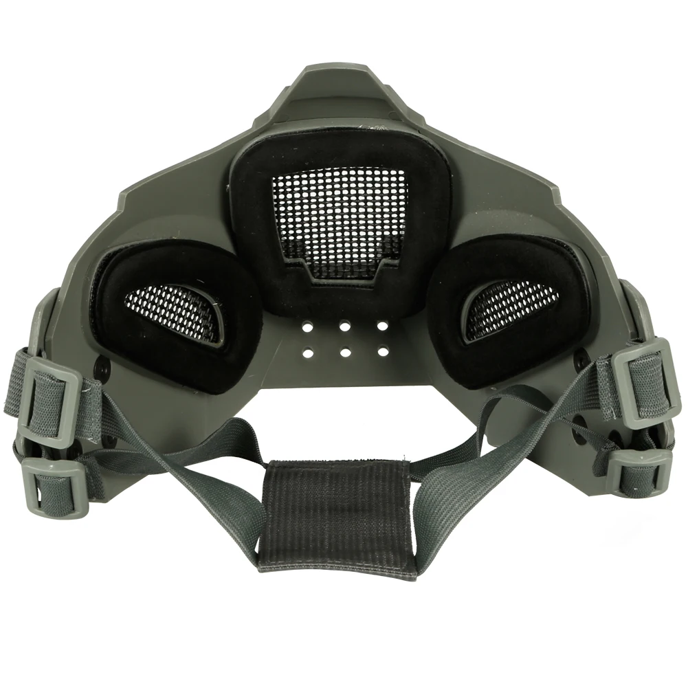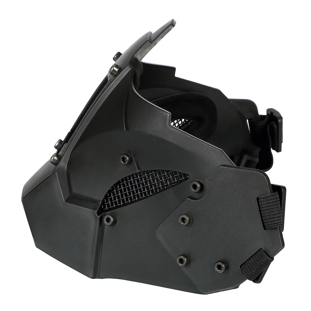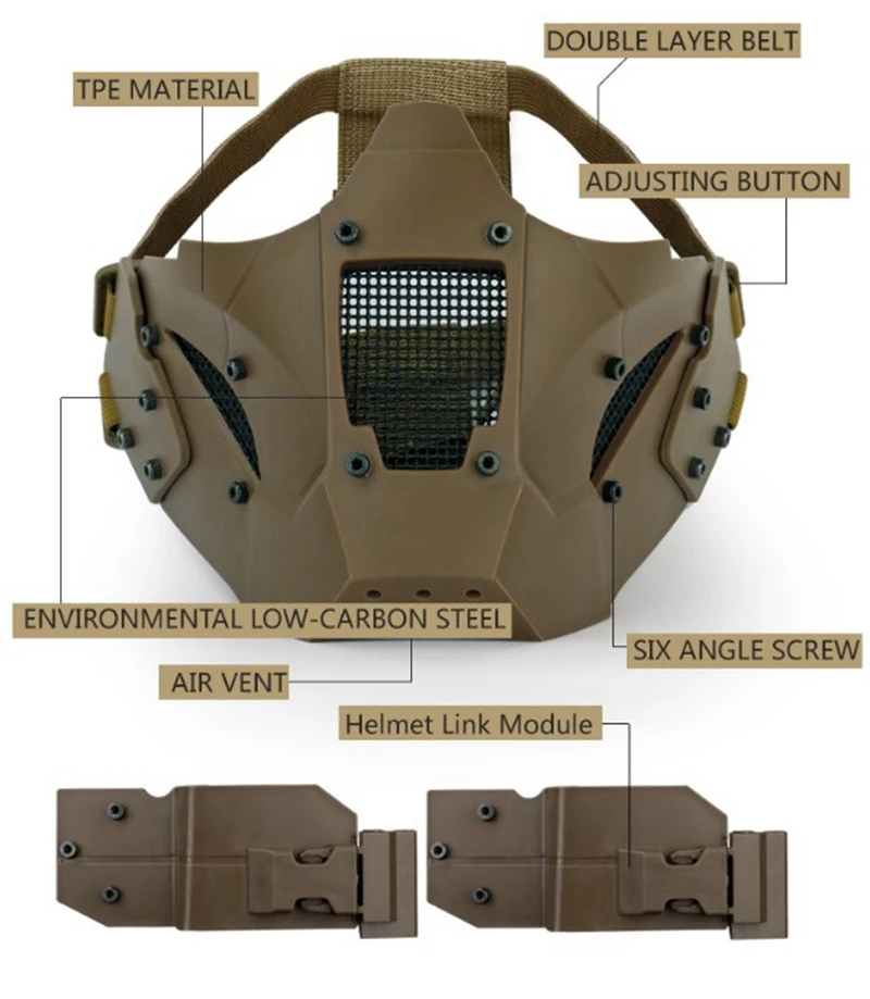 Diadema de neopreno elástica con sistema elástico ajustable Adecuado para la mayoría de los tamaños CabezaCompatible con la mayoría de gafas de protección ocularDiseño de ingeniero físico: Integración de arte y deportes de luchaEl sistema de uso de cabeza suave TPE de alta intensidad ofrece una buena protección,Protege la parte inferior de la cara, los dientes y la nariz contra los impactos.Multiusos: Paintball táctico Airsoft, al aire libre, Halloween, accesorios de película, fiesta de cosplay.Paquete del producto: