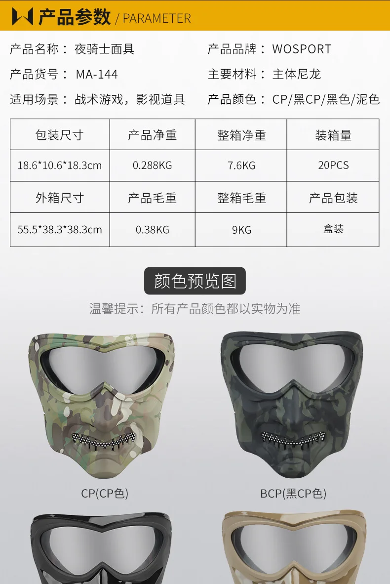 Máscara de camuflaje de caballero nocturno, equipo táctico de protección facial completa, accesorios de película y Televisión de vestir de Halloween