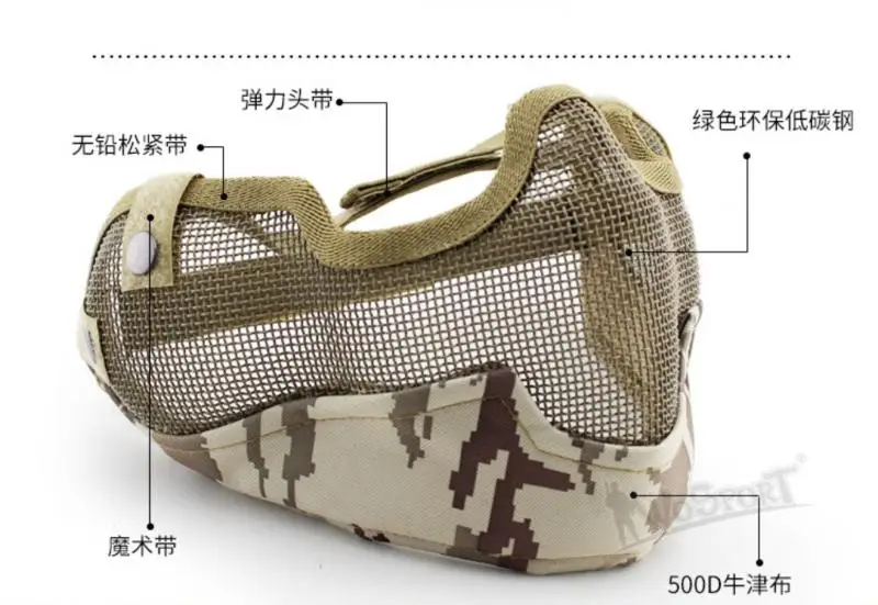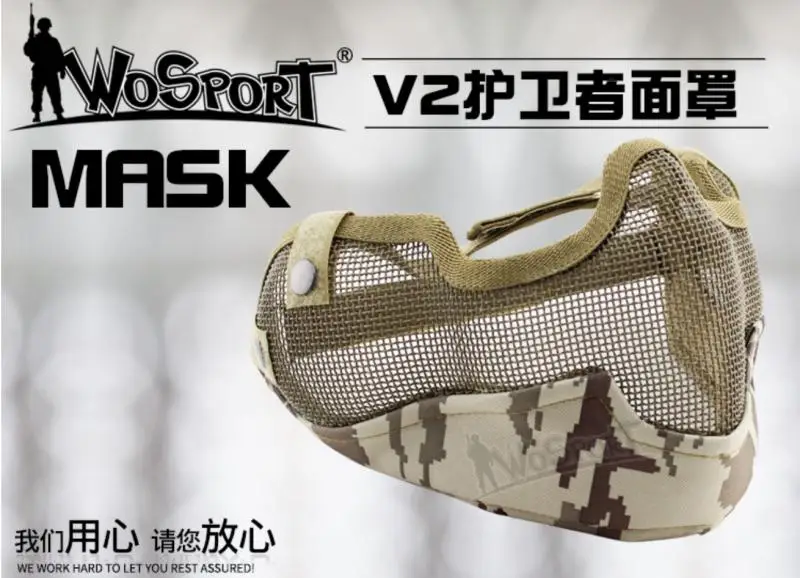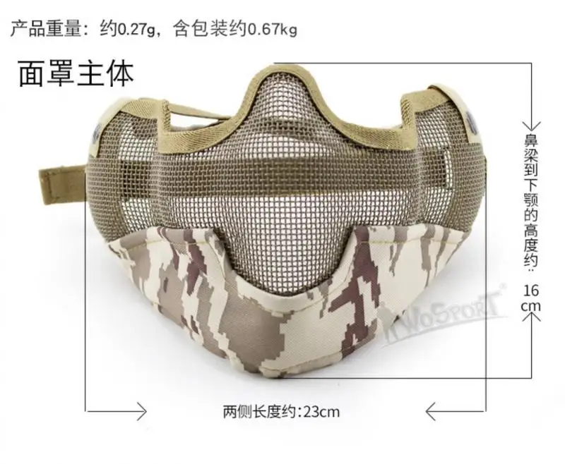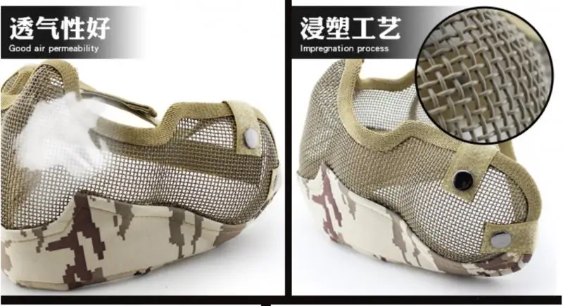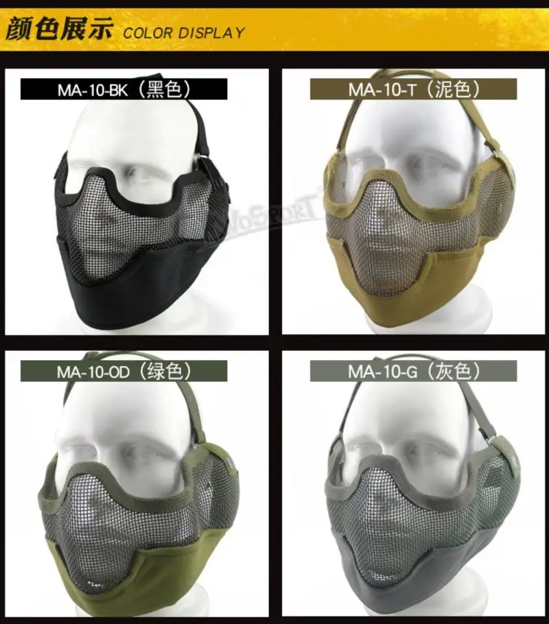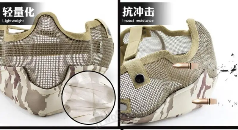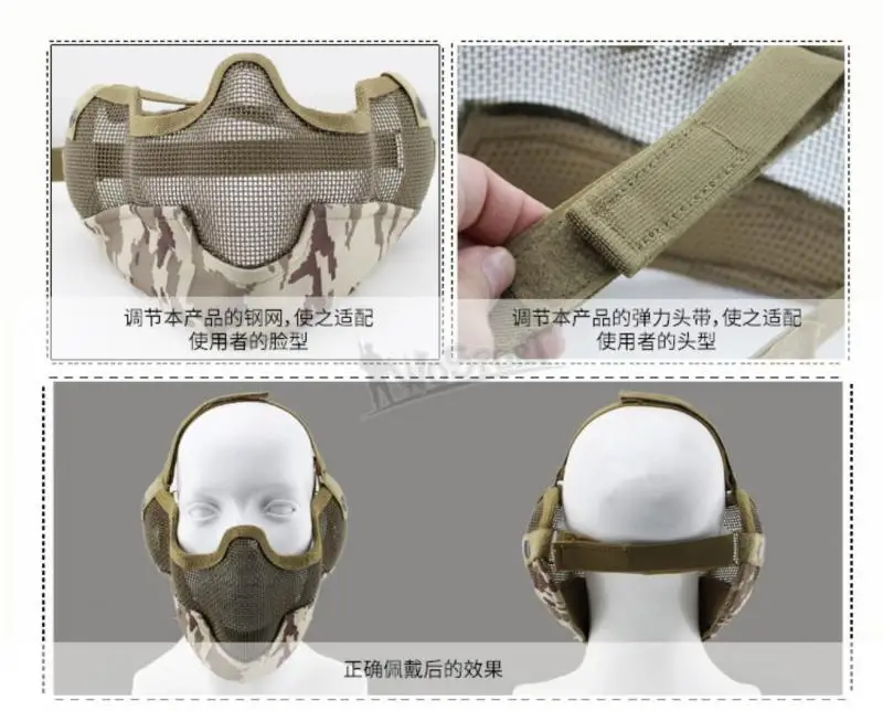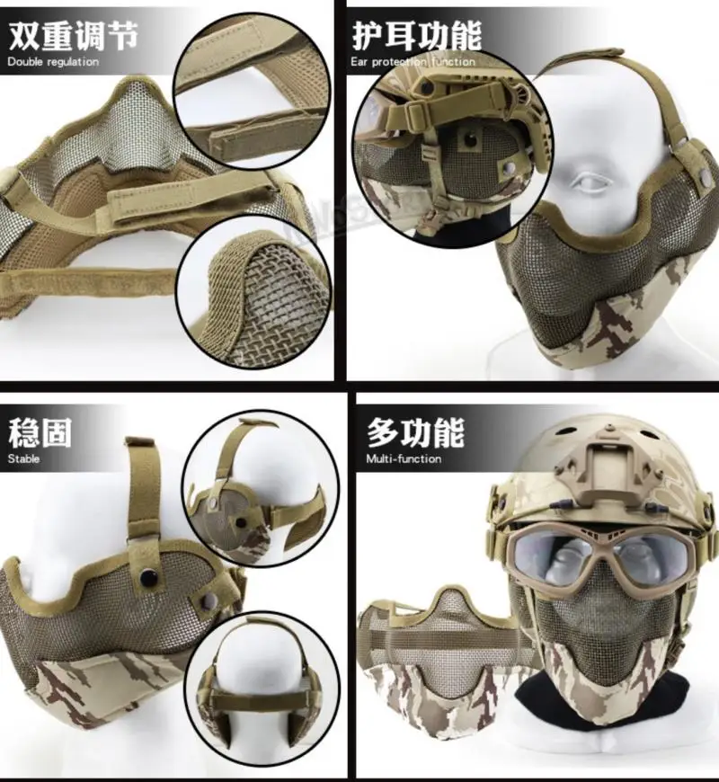 Máscara de camuflaje táctico de batalla para montar, máscara de alambre V2, protección para la cara y los oídos al aire libre, salvaje