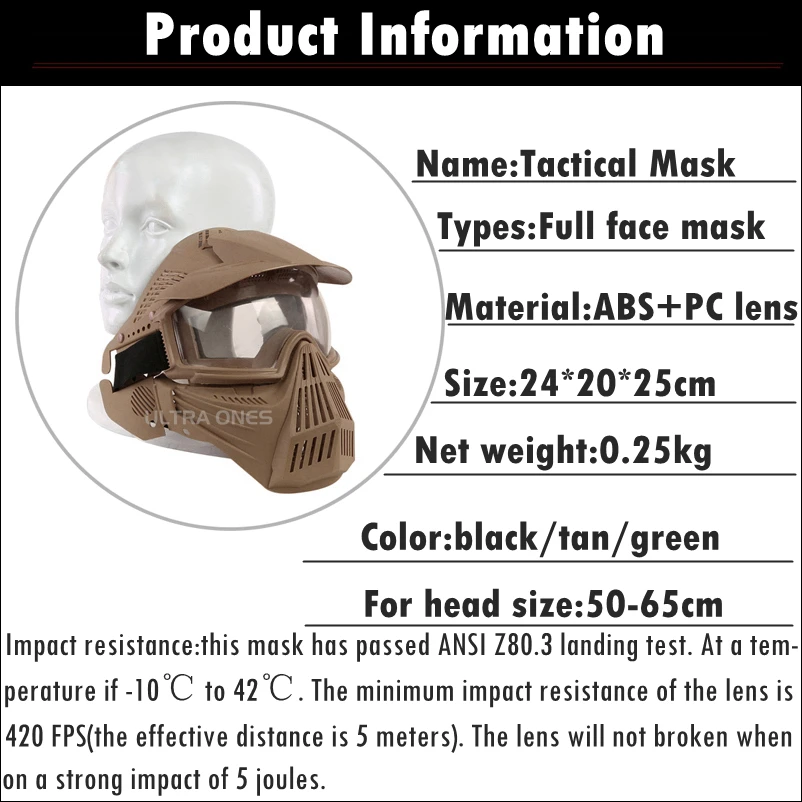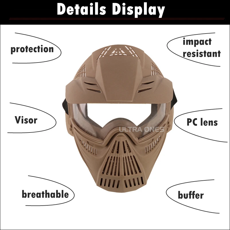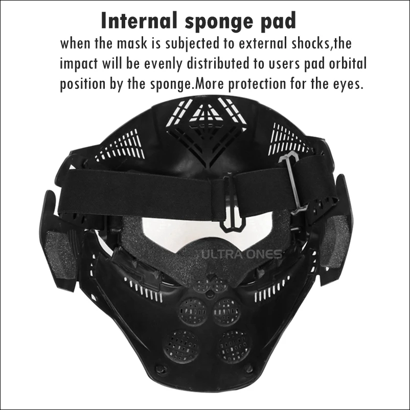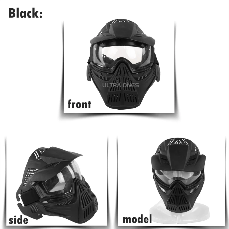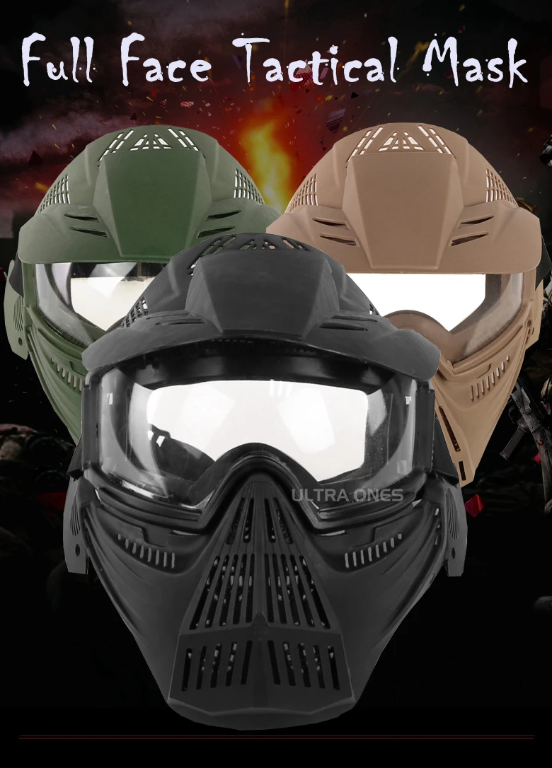 Máscara de Airsoft de cara completa para caza CS Wargame, máscaras protectoras para tiro al aire libre, Paintball, máscara transpirable, accesorios con gafas● Nombre: máscara facial completa táctica