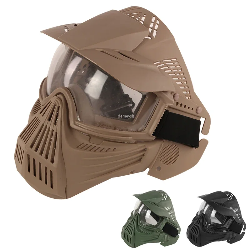 Máscara de Airsoft de cara completa para caza CS Wargame, máscaras protectoras para tiro al aire libre, Paintball, máscara transpirable, accesorios con gafas● Nombre: máscara facial completa táctica