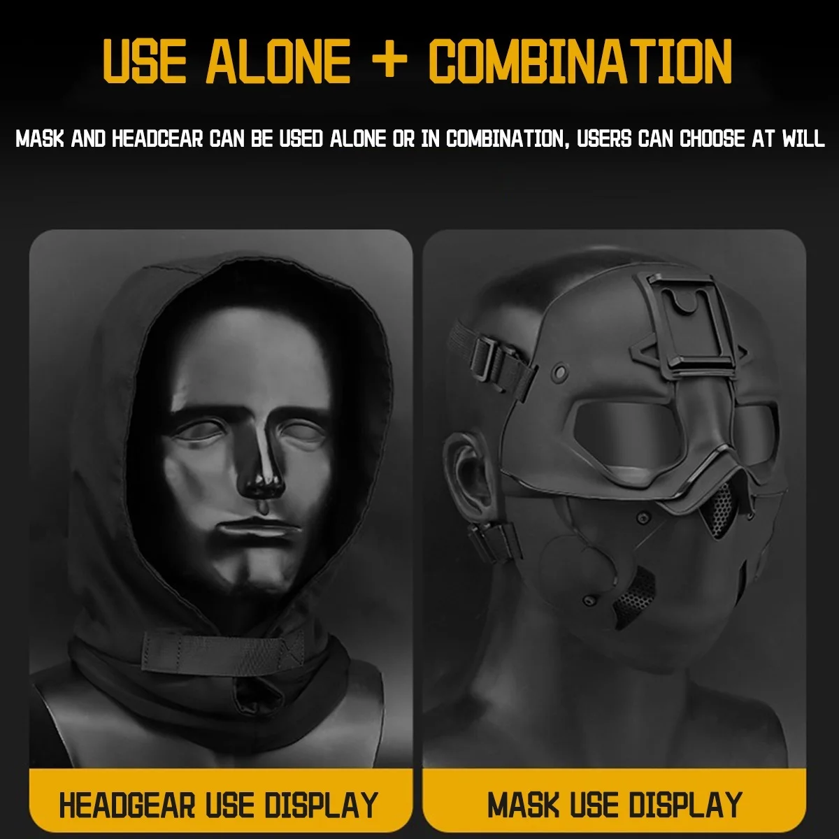 【AMPLIA GAMA DE USOS 】 Máscara táctica de tipo salvaje y capuchas de modo dual Combinación y combinación razonable, adecuada para diversas actividades al aire libre: pistola de aire, paintball, CS, juegos de rol, Halloween...