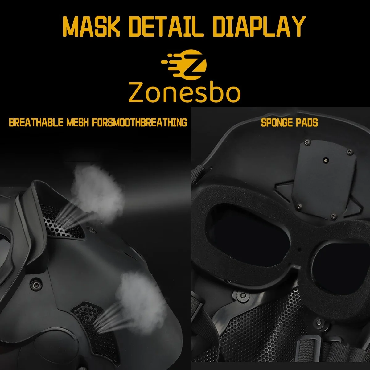 【MATERIAL DE ALTA CALIDAD 】La mascarilla Airsoft está hecha de nailon mejorado para mayor resistencia y durabilidad, se adapta a la cara. Los ojos de la máscara están equipados con esponjas amortiguadoras para reducir el impacto y proteger completamente los ojos y la cara.