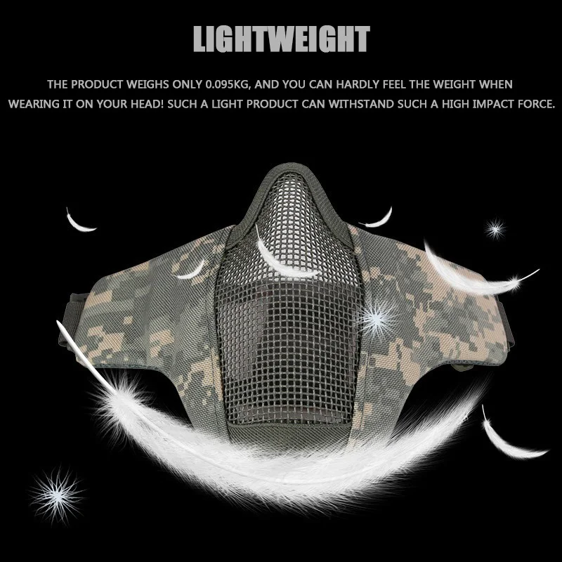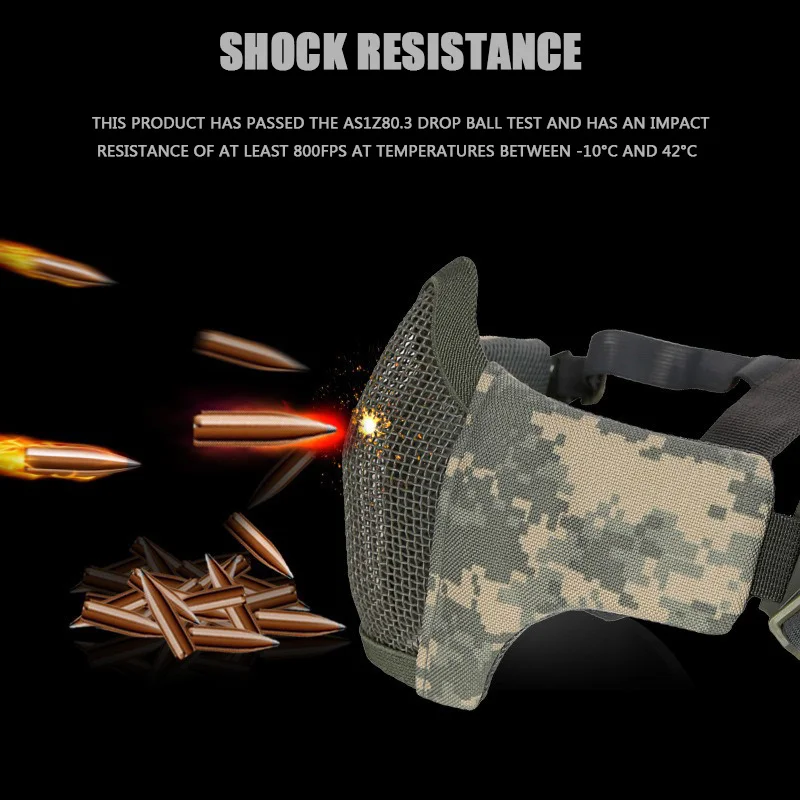 Máscara de ciclismo al aire libre malla de acero al carbono transpirable media máscara de protección de campo CS