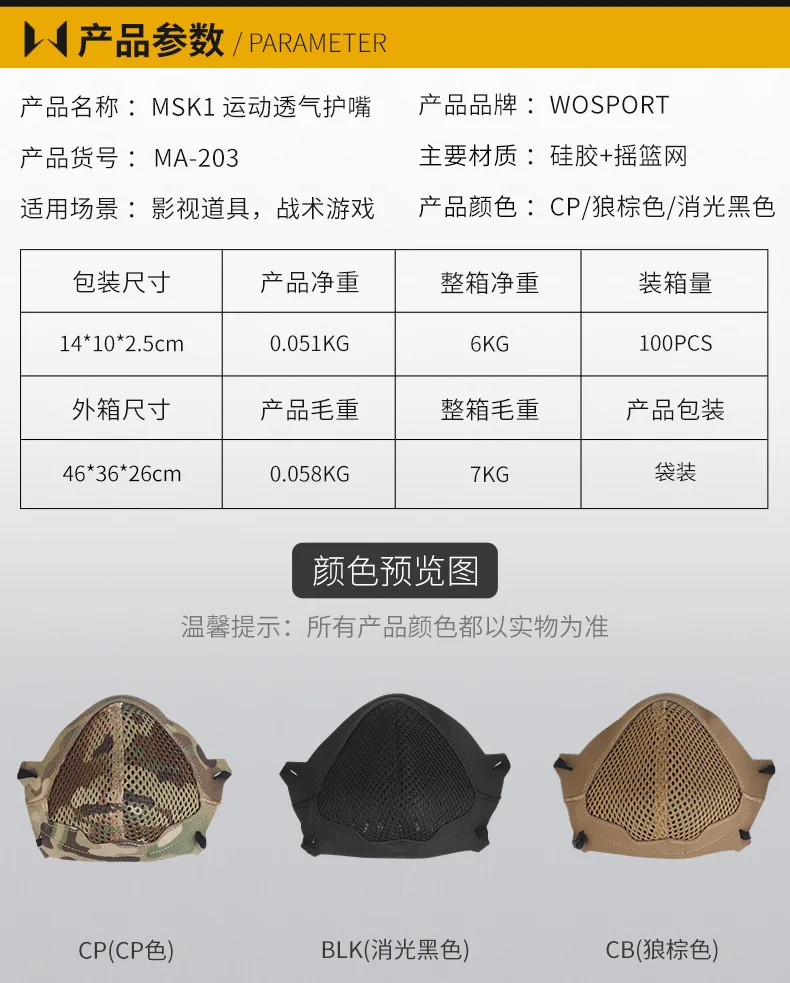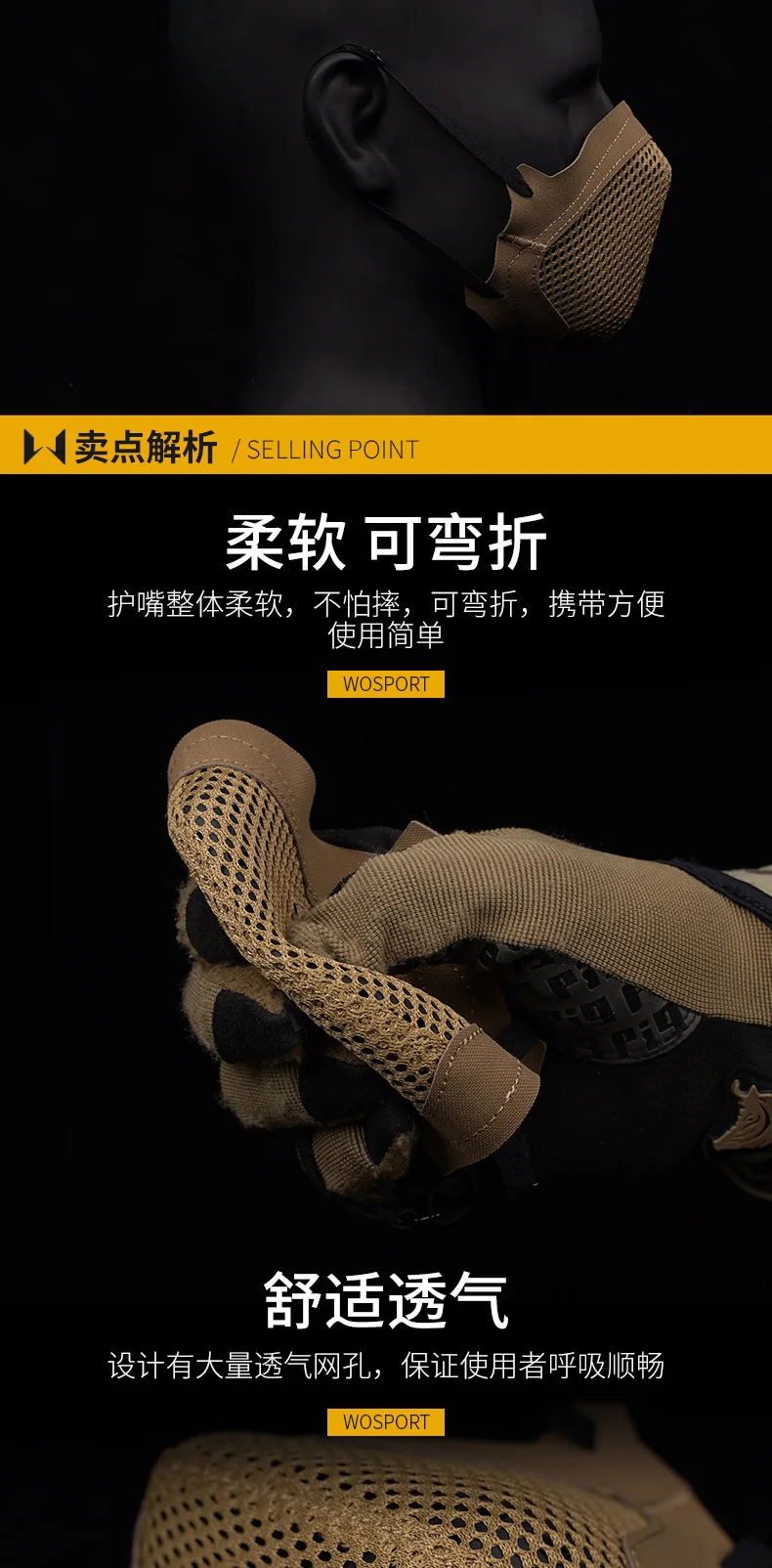 Máscara de equipo al aire libre con protector bucal transpirable ventilado con ajuste interior de silicona suave y agradable para la piel