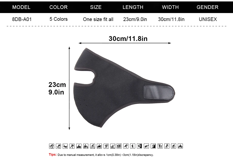 Características:(8DB-A02)1.La capa superficial utiliza forro polar de oveja, que es agradable a la piel y cálido; la capa interior utiliza forro polar de Kobe, que es cálido, transpirable y altamente elástico. El tejido compuesto en sí es ligero, no pesado y extremadamente ligero.2.Diseño de cara completa, cubre bien la cara y mantiene el calor. La circunferencia se puede ajustar arbitrariamente, adecuada para personas con diferentes circunferencias faciales. Porque la velocidad traerá un viento violento a su cara cuando esté en motocicleta o en bicicleta, lo que puede proteger su cara del viento.3.Hay agujeros en la nariz para respirar libremente y tAquí hay una tira adhesiva en la parte posterior para ajustar el tamaño.4.Se siente extremadamente cómodo, suave y cálido de llevar.5.Adecuado para esquiar, motocicletas, correr, ciclismo, senderismo, montañismo, snowboard, pistolas de aire, paintball, tiro, caza, tácticas, entrenamiento, ciclismo y otras actividades al aire libre, y calor diario por debajo de 0 grados.
