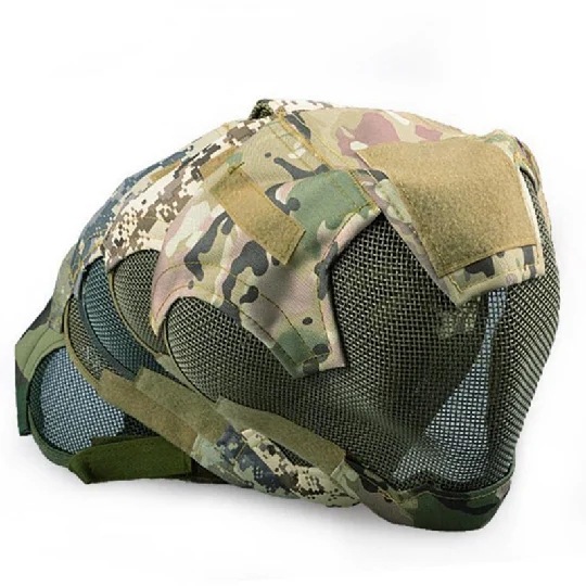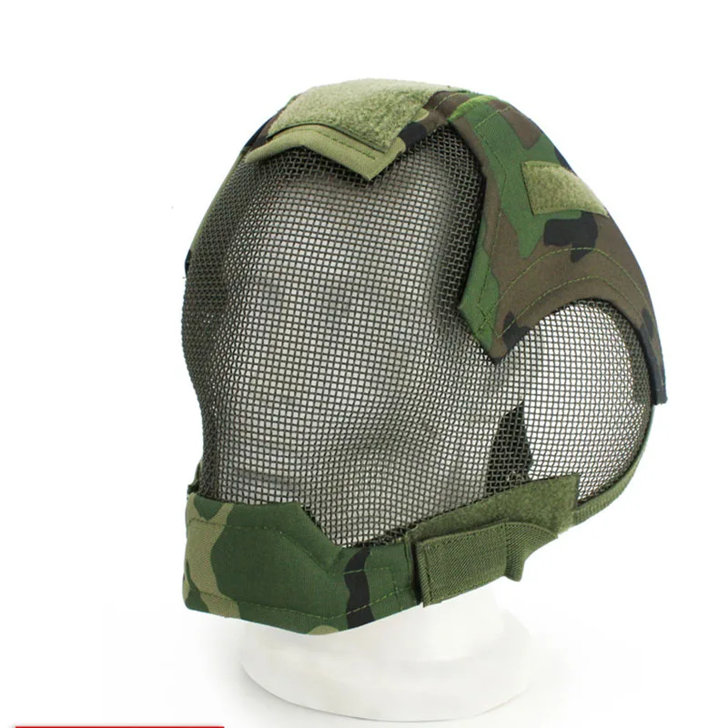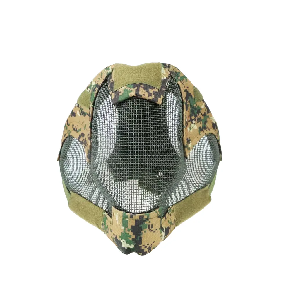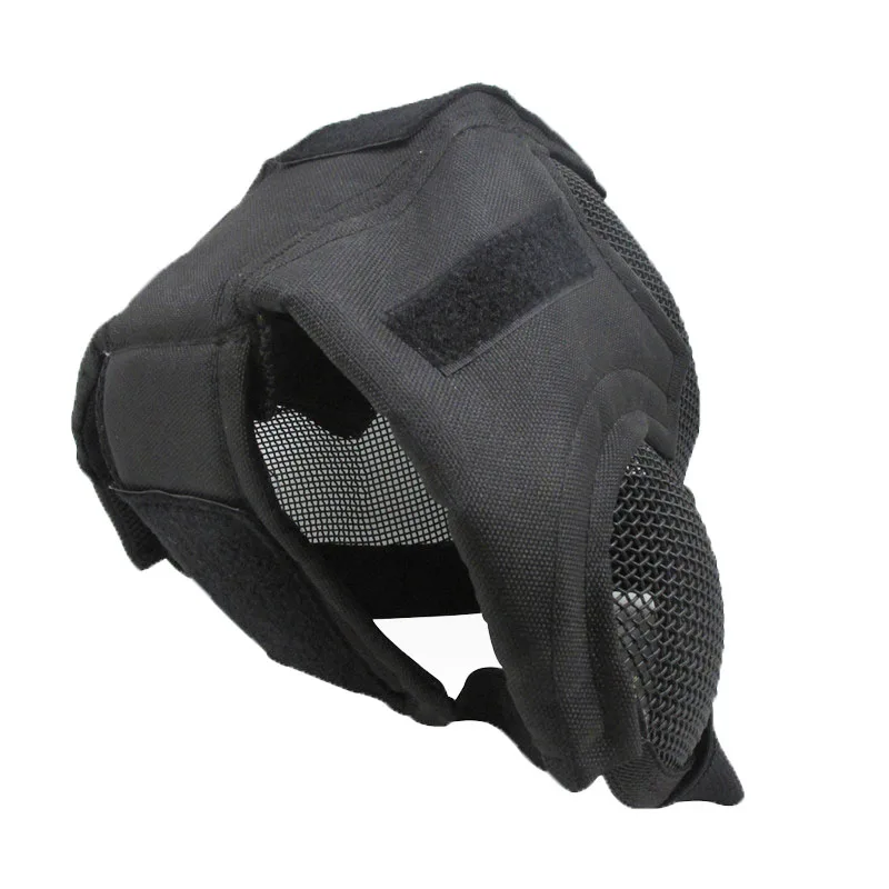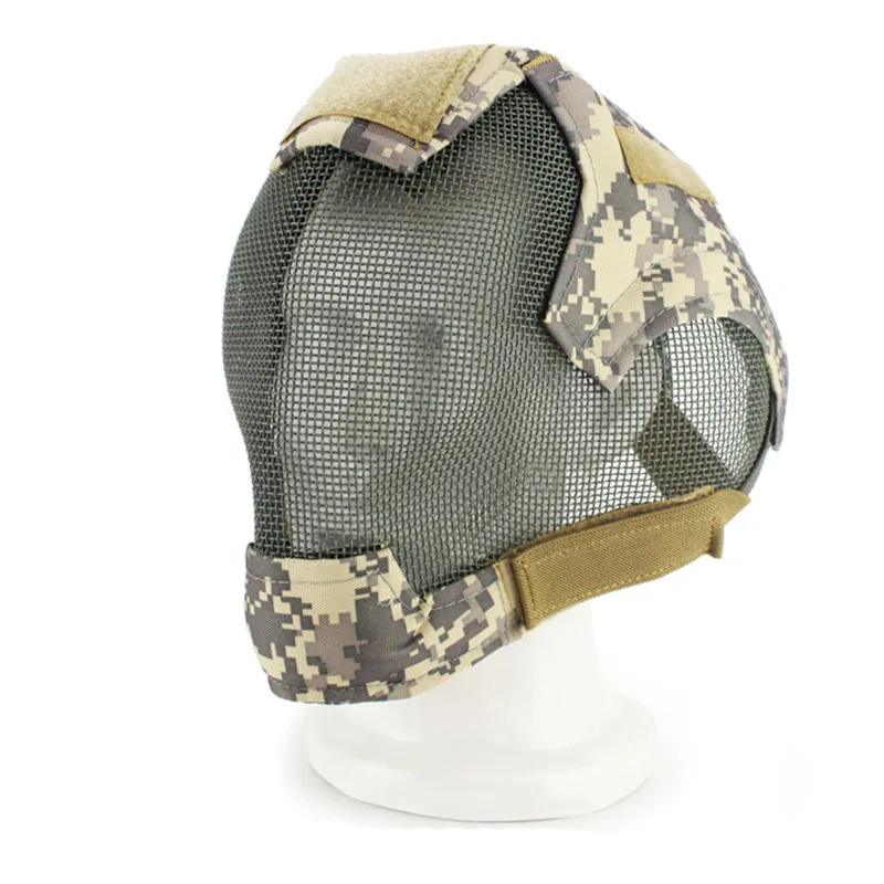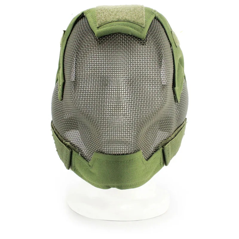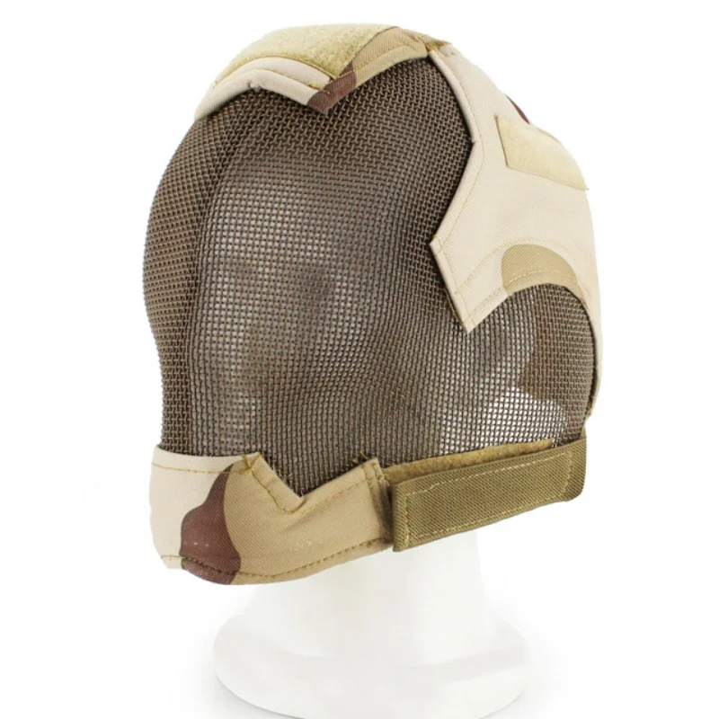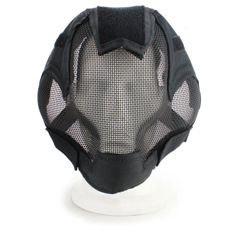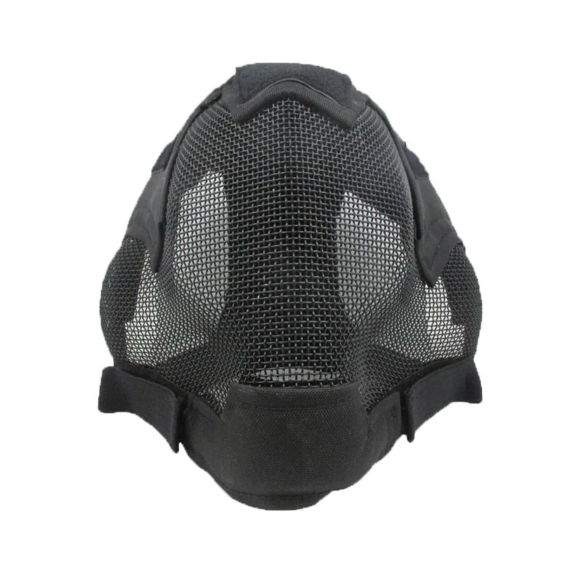 Una máscara frontal completa de protección para la cabeza, cubre desde la frente hasta la barbilla como una especie de máscara de esgrima táctica.Diseño de malla, transpirable y ligero.Resiste el golpe de un rifle de airsoft de alta potencia (por debajo de 480 FPS)Talla única para la mayoríaCorrea de cinturón ajustable y elásticaSe puede ajustar con cara personal.Incluye acolchado y nailon alrededor de la máscara.Muy similar a una máscara de esgrima de espada.Excelente ventilación de aire proporcionada exclusivamente por la tecnología de malla de alambre sobre lentes.La cara de hierro suave y delgada permite posiciones de disparo de puntería de perfil bajoProporciona protección para mejillas, nariz, boca, oreja, frente y detrás de la cabeza.Logre protección facial completa con la mayoría de las gafas Full Seal y otras gafas de tamaño similar.Resistencia de la máscara de malla de acero para resortes de acero al carbono.Protección balística: Aprox.600 FPS con 6 mm 0,20 g BBDiseño de ingeniería del cuerpo humano, cómodo con acolchado suave en el interior.Mascarilla protectora integral, para protección por todo el rostro y las orejas.-Perfecto para juegos de guerra de paintball airsoft