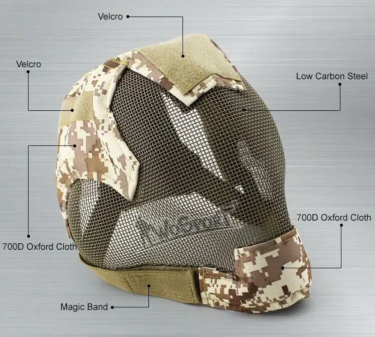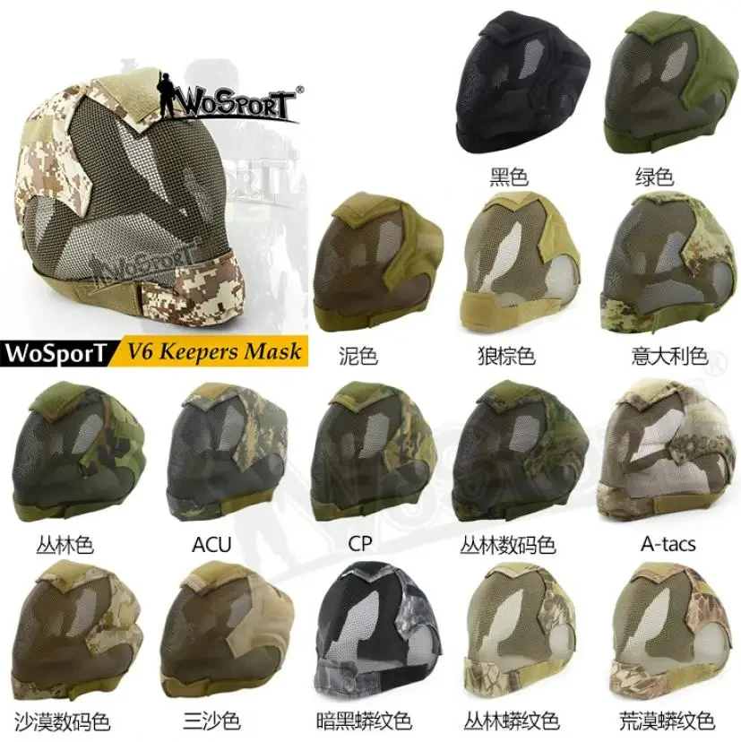 Máscara facial completa de malla de acero V6 para caza táctica de Paintball, puede usar gafas