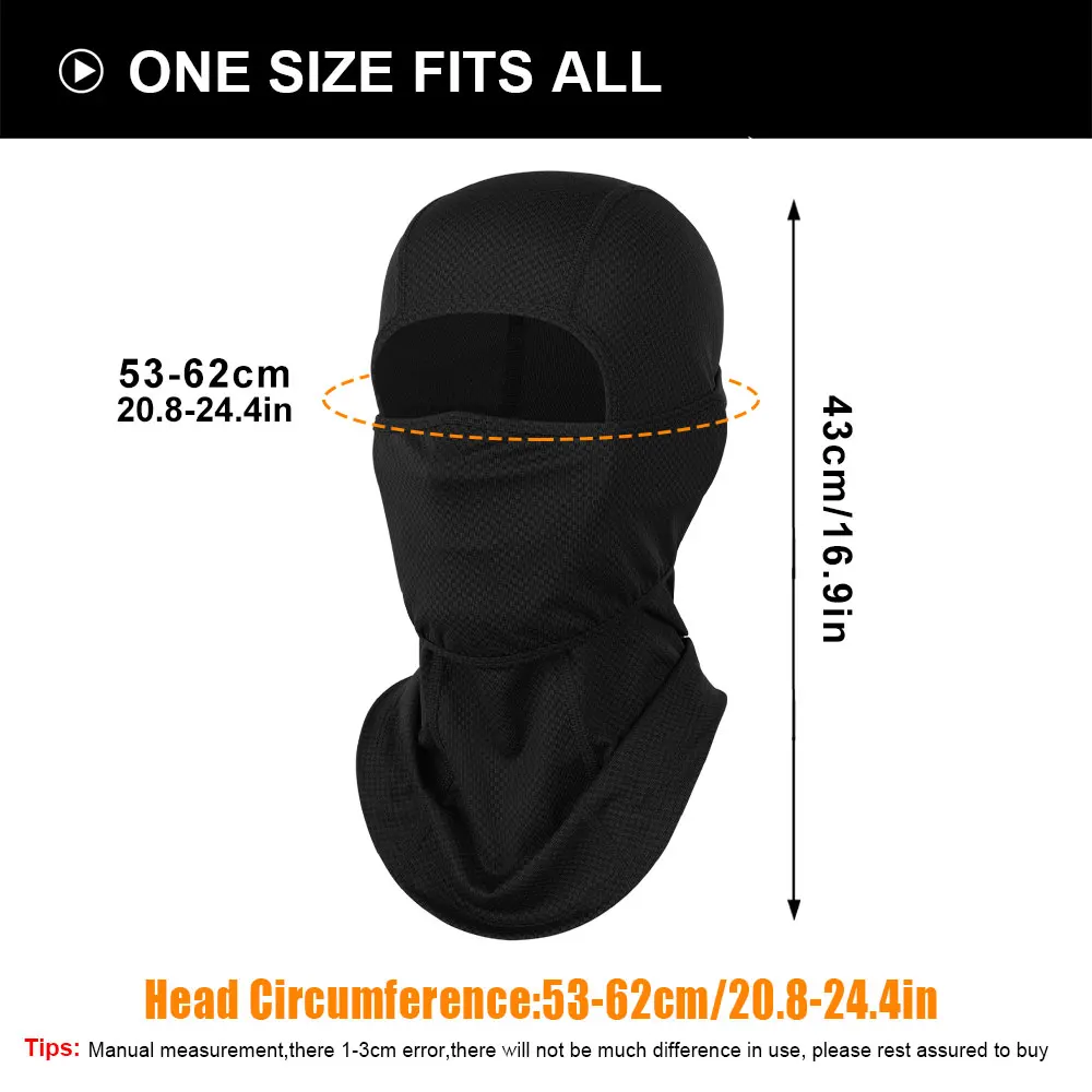 • Sensación refrescante: La tela helada de la cubierta de cara completa proporciona una sensación refrescante que ayuda a regular la temperatura corporal y evitar el sobrecalentamiento.