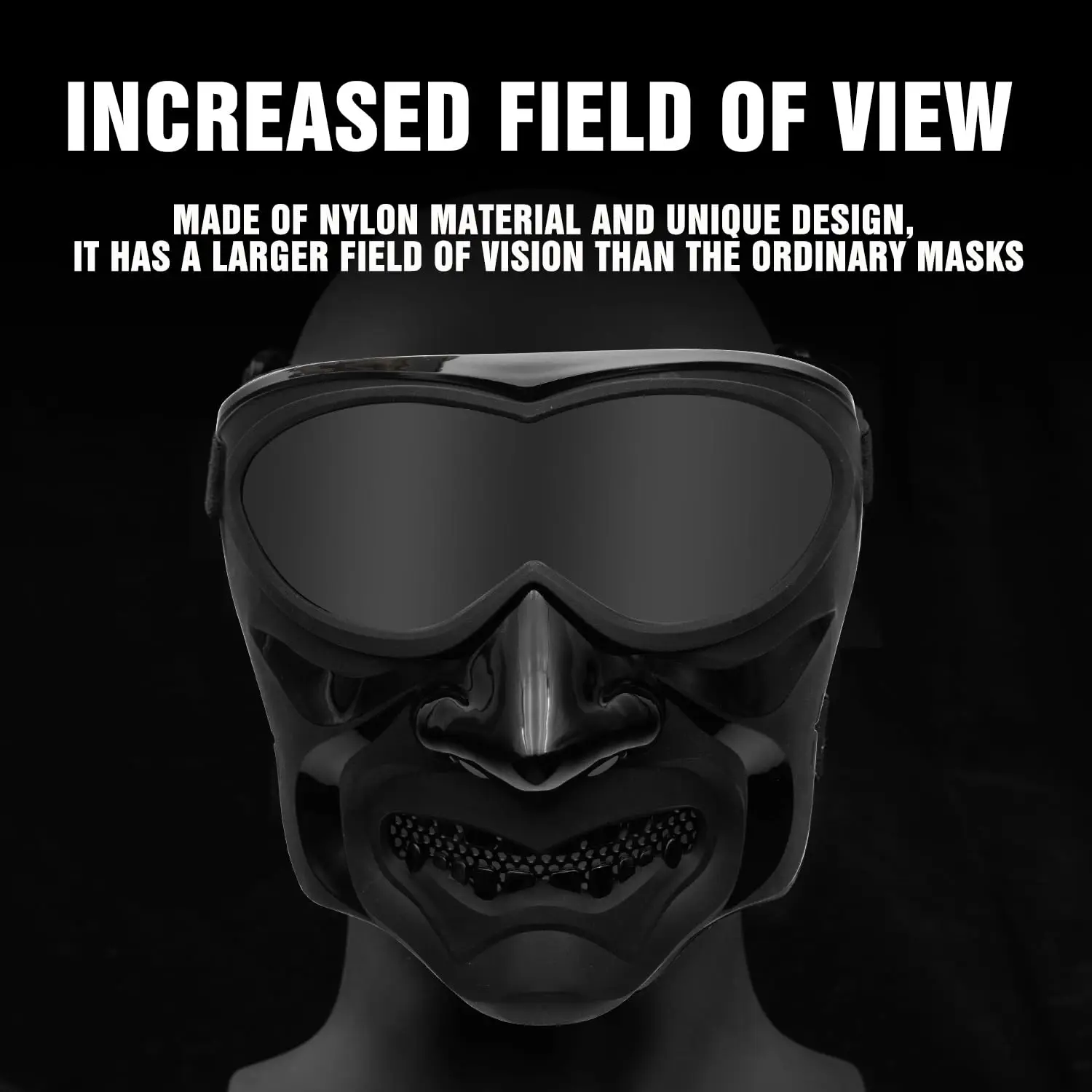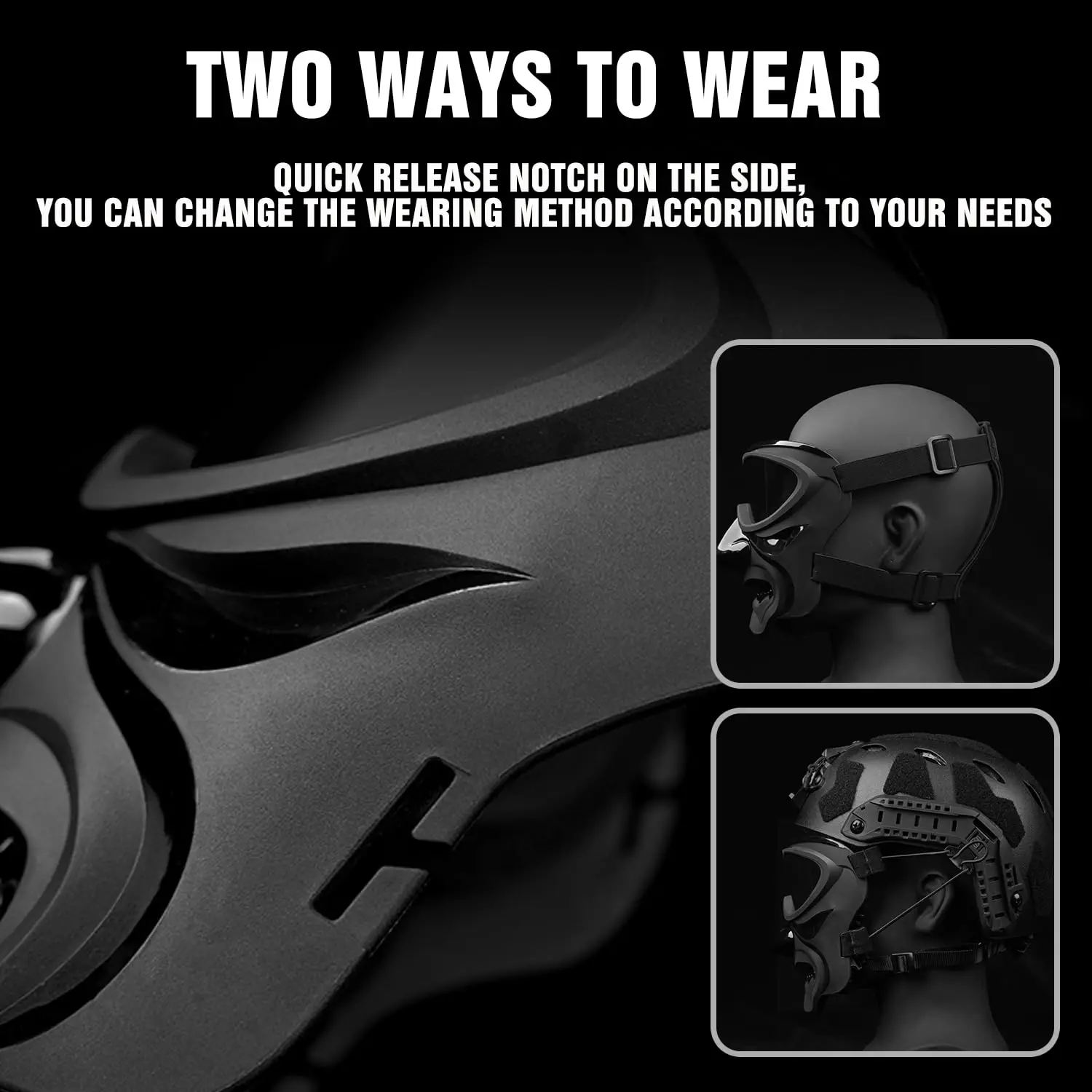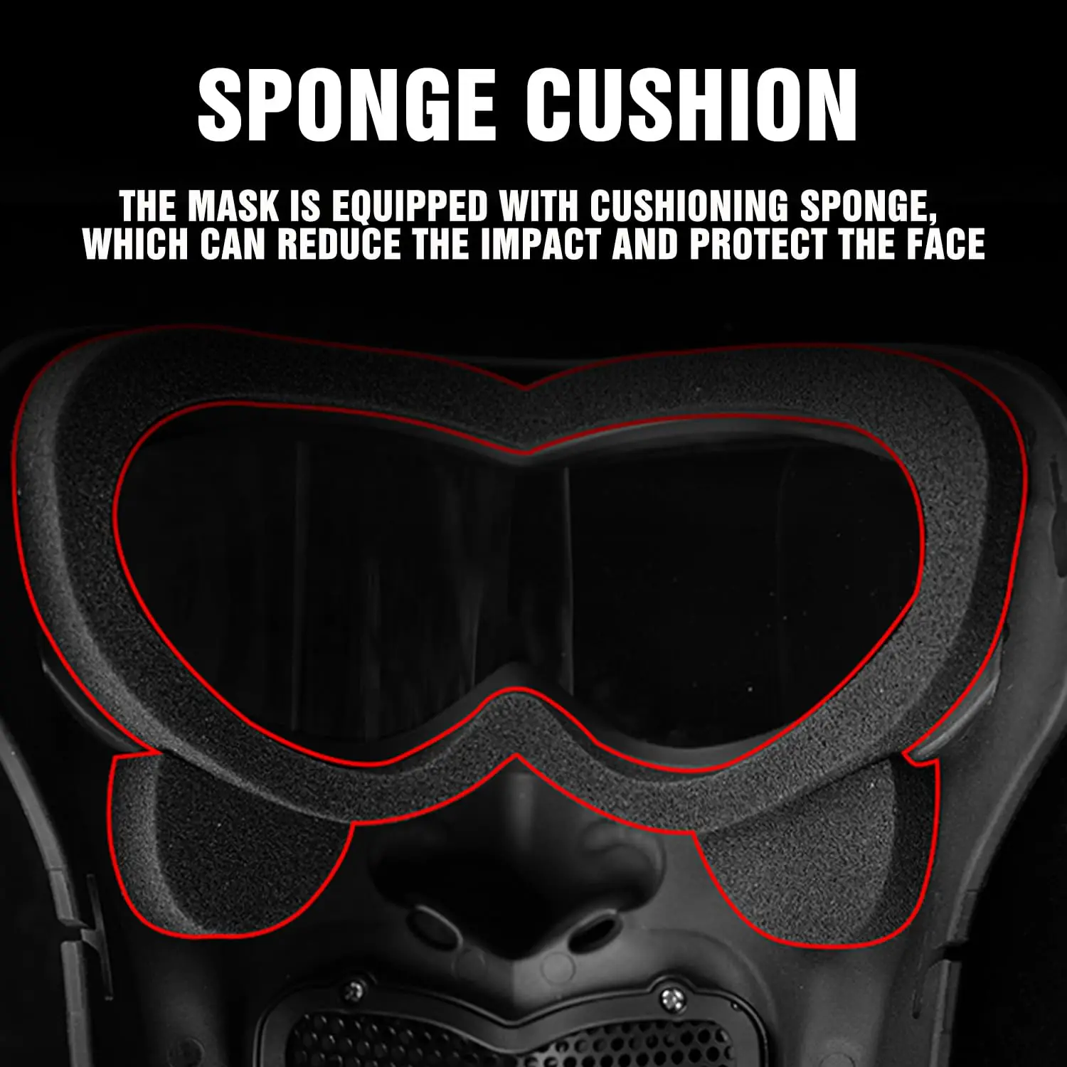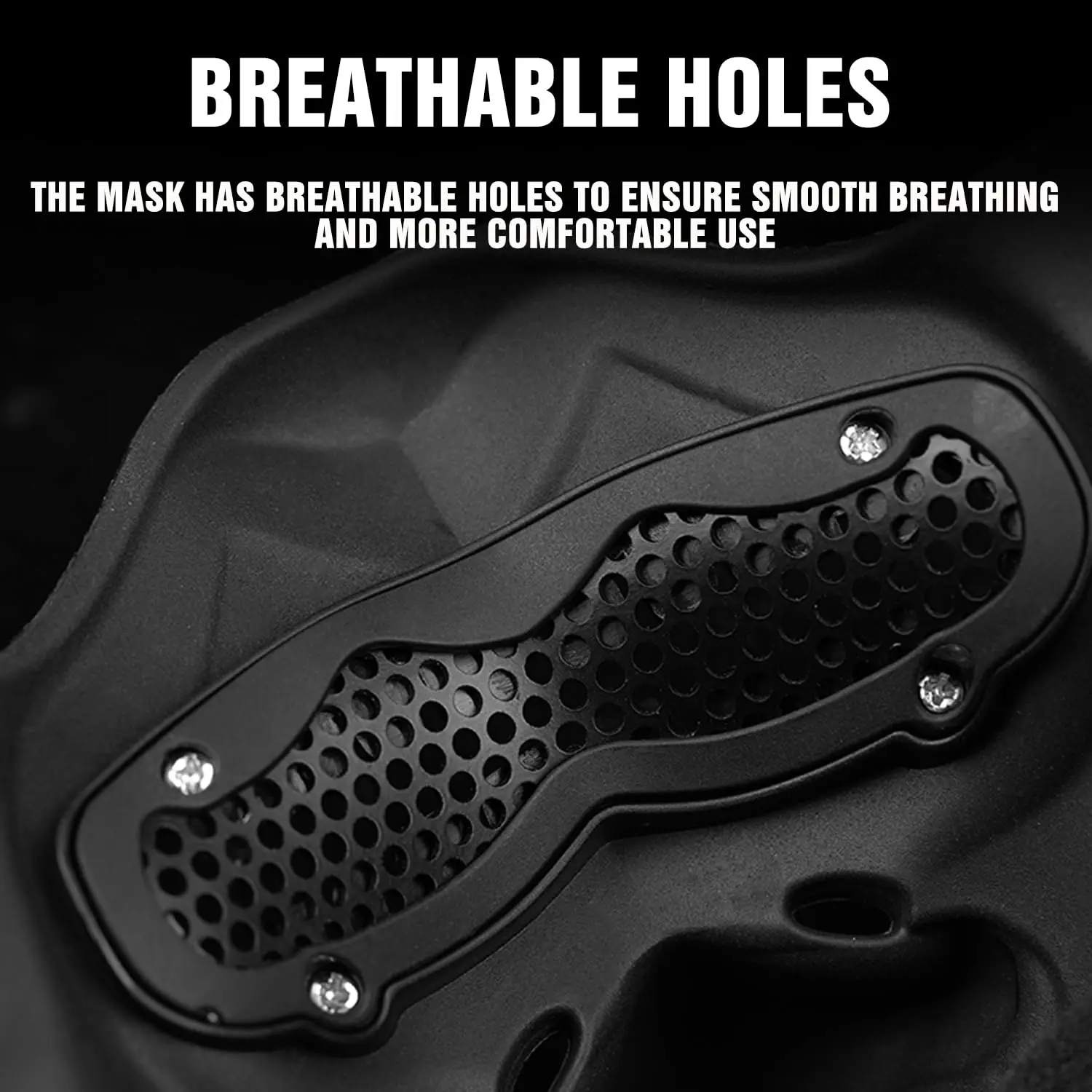 Excelente Diseño: Esta máscara está diseñada ergonómicamente para adaptarse y envolver completamente la cara. La máscara también está equipada con una esponja acolchada para reducir el impacto y proteger la cara, múltiples orificios de aire en la máscara para garantizar una respiración suave y más cómoda de usar.