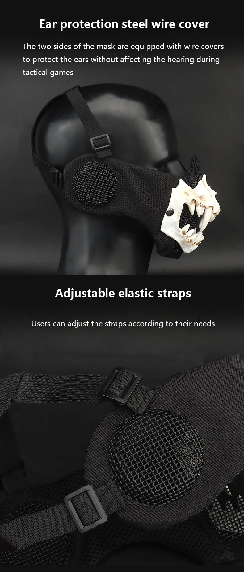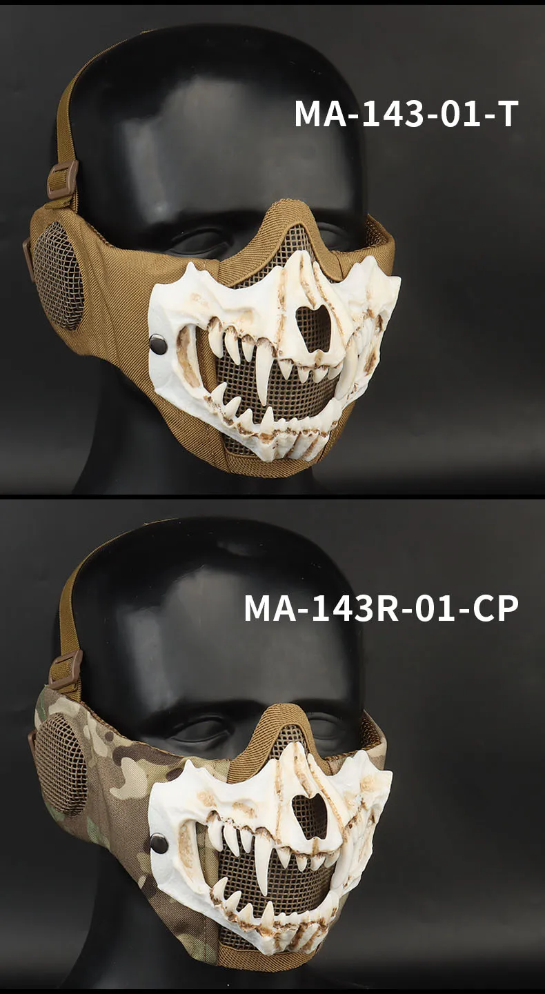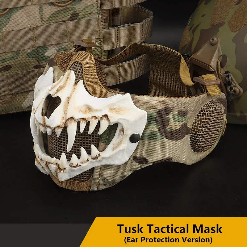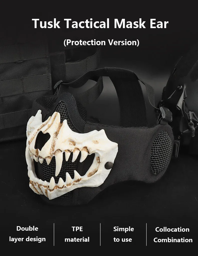 Máscara Fang (versión de protección auditiva) conducción al aire libre, transpirable, alambre de acero, doble capa, máscara protectora táctica