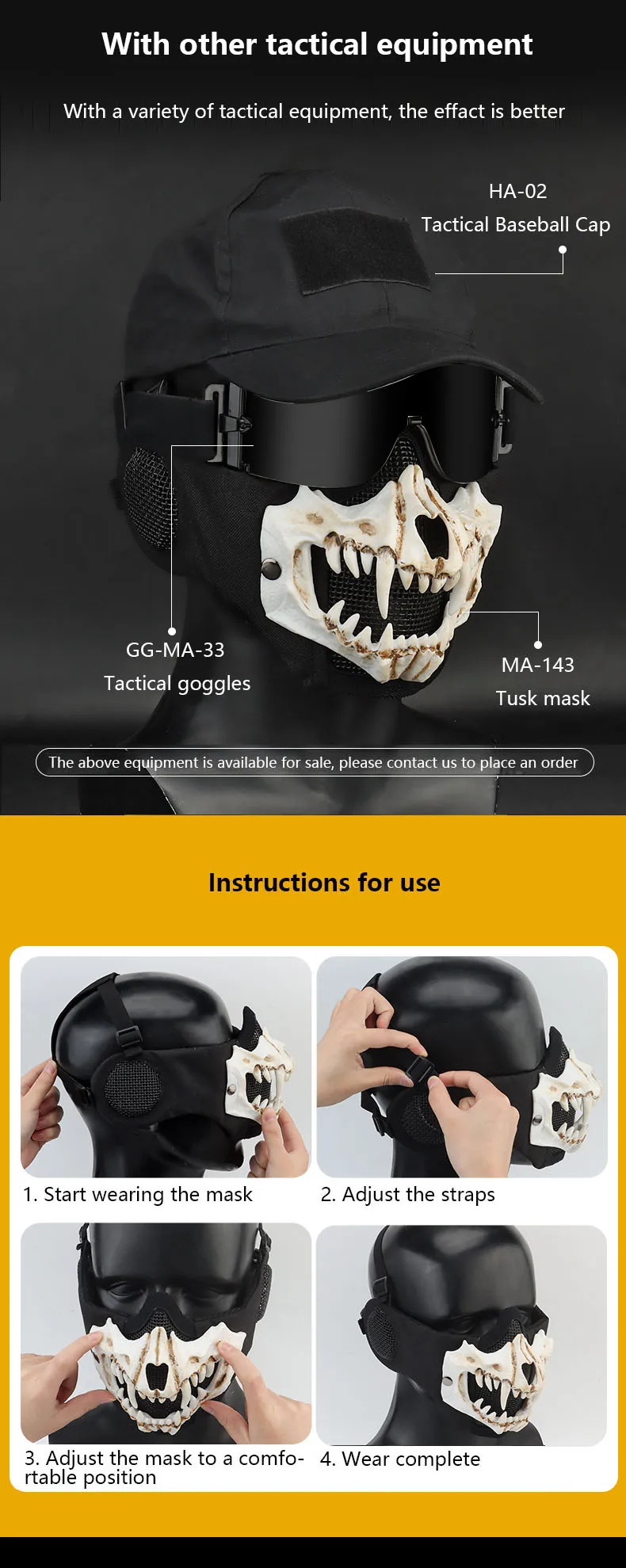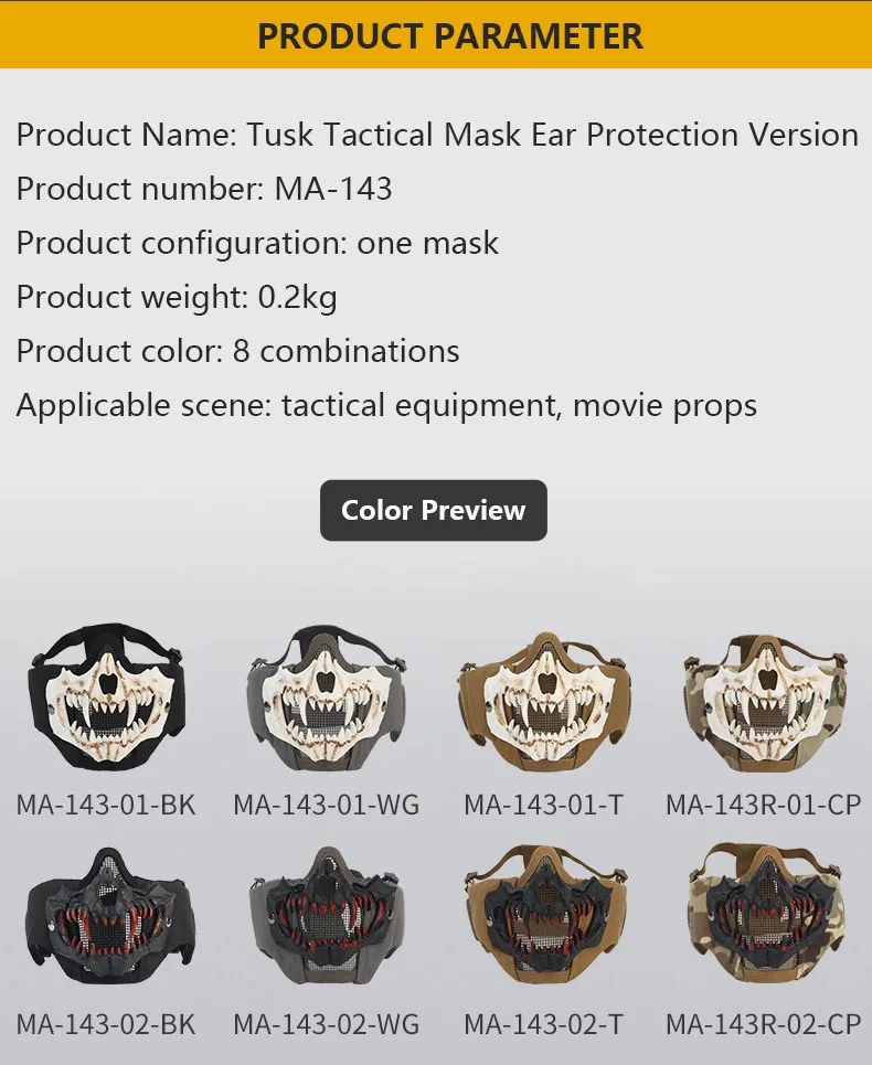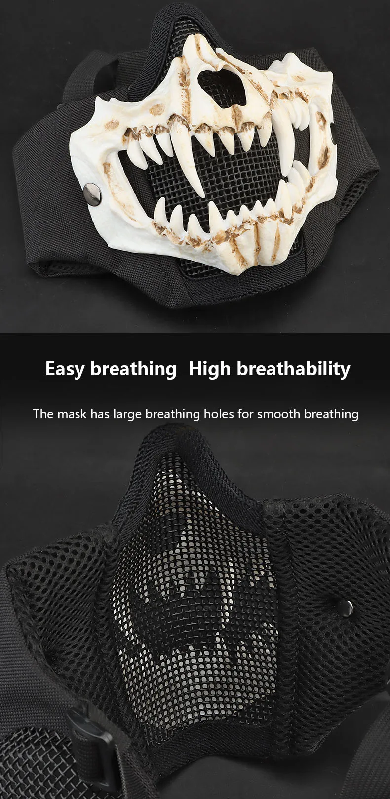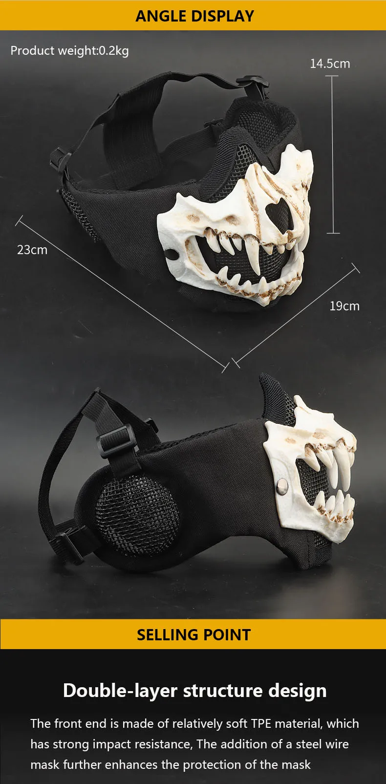 Máscara Fang (versión de protección auditiva) conducción al aire libre, transpirable, alambre de acero, doble capa, máscara protectora táctica