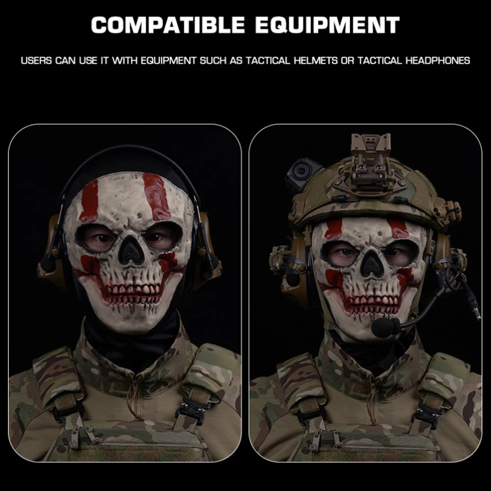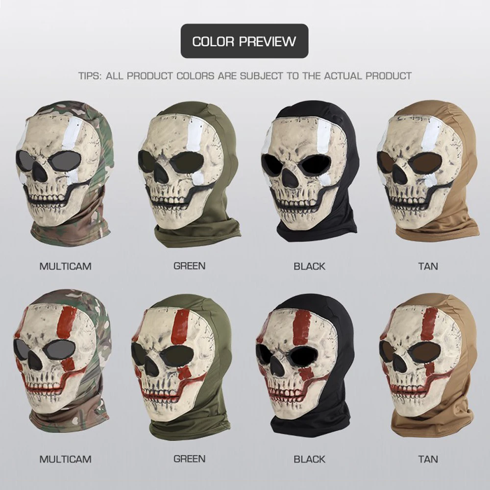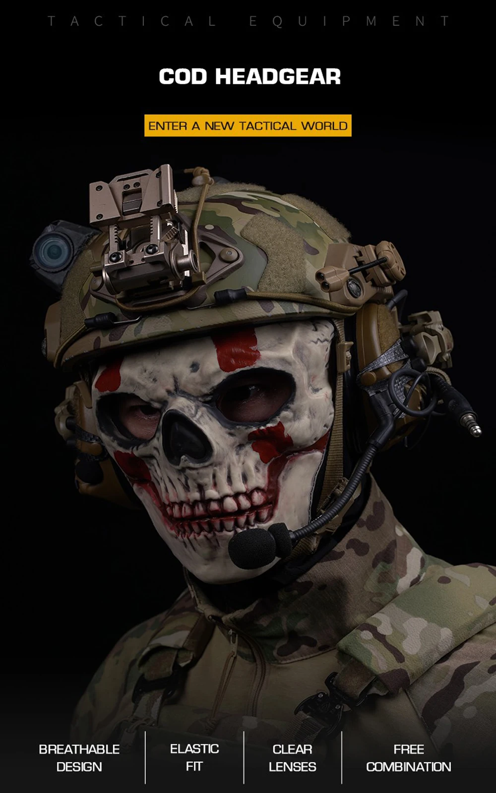 Máscara de fantasma, tocado de COD, máscara completa de calavera para Cosplay, casco de caza rápida OPS, equipo táctico CS Airsoft, pasamontañas, bufandas