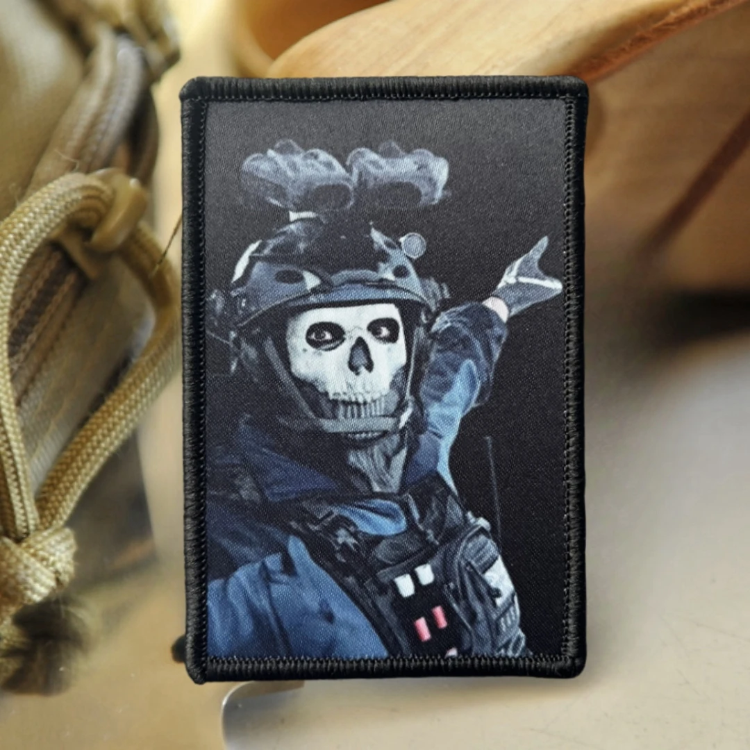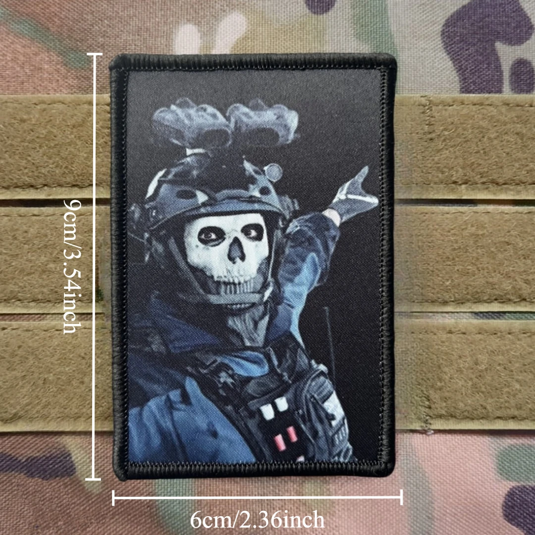Máscara de fantasma, insignia de moral de Chevron, parches de gancho y bucle impresos con esqueleto para ropa, brazalete del ejército militar, pegatina de embalaje trasero