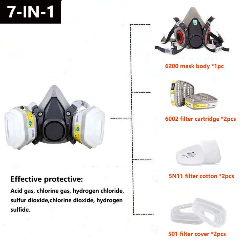 Protección efectiva: gas ácido y vapor, cloruro de hidrógeno, fosgeno, óxidos de nitrógeno, dióxido de azufre, dióxido de cloro, sulfuro de hidrógeno, pesticidas que contienen fósforo.