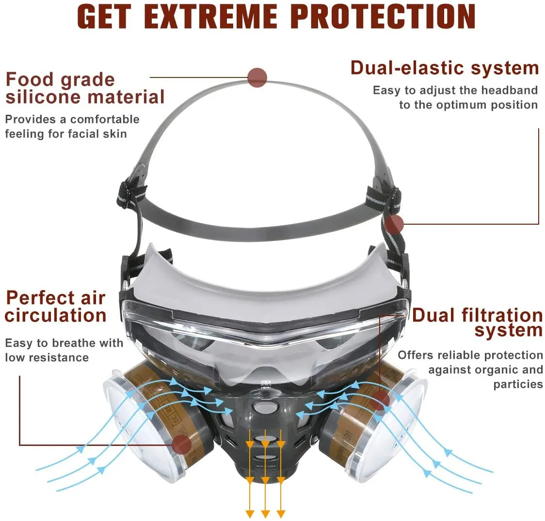 -Hecho de material de silicona de grado alimenticio, La silicona elástica no le hace sentir incómodo y puede sellarse firmemente para evitar la inhalación de polvo o partículas.
