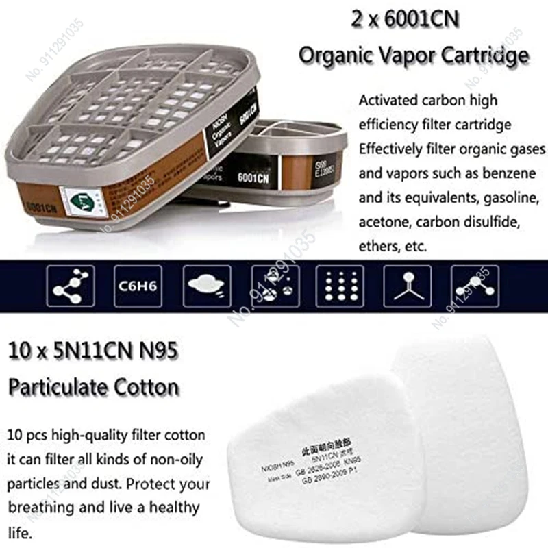 1 máscara 6800, 2 filtros de gas orgánico 6001, filtros de algodón 10 x 5N11, 2 cubiertas de filtro