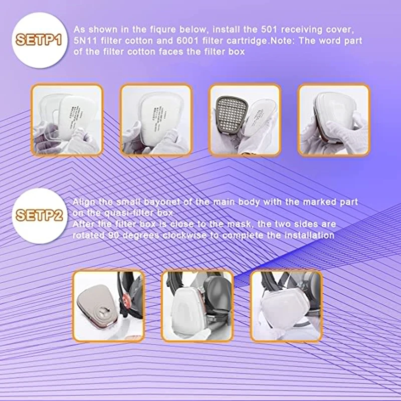 Esta máscara es completamente equivalente a la función de protección total del M 6800, puede usar filtro de algodón M, 100% nuevo y de alta calidad.