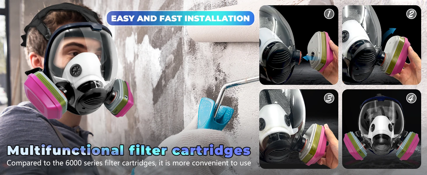 Nuestras máscaras de gas ofrecen una protección integral contra una amplia gama de sustancias peligrosas al tiempo que brindan doble filtración con una eficiencia de más del 99,97%.Proporcionan una excelente protección durante las actividades laborales.Adecuado para trabajos al aire libre, soldadura, ferrocarriles, fabricación, taller, protección ocular DIY, laboratorio, limpieza, construcción, desierto, diseñadores, electricistas, trabajos internos, ingenieros, láseres, maquinaria y más.