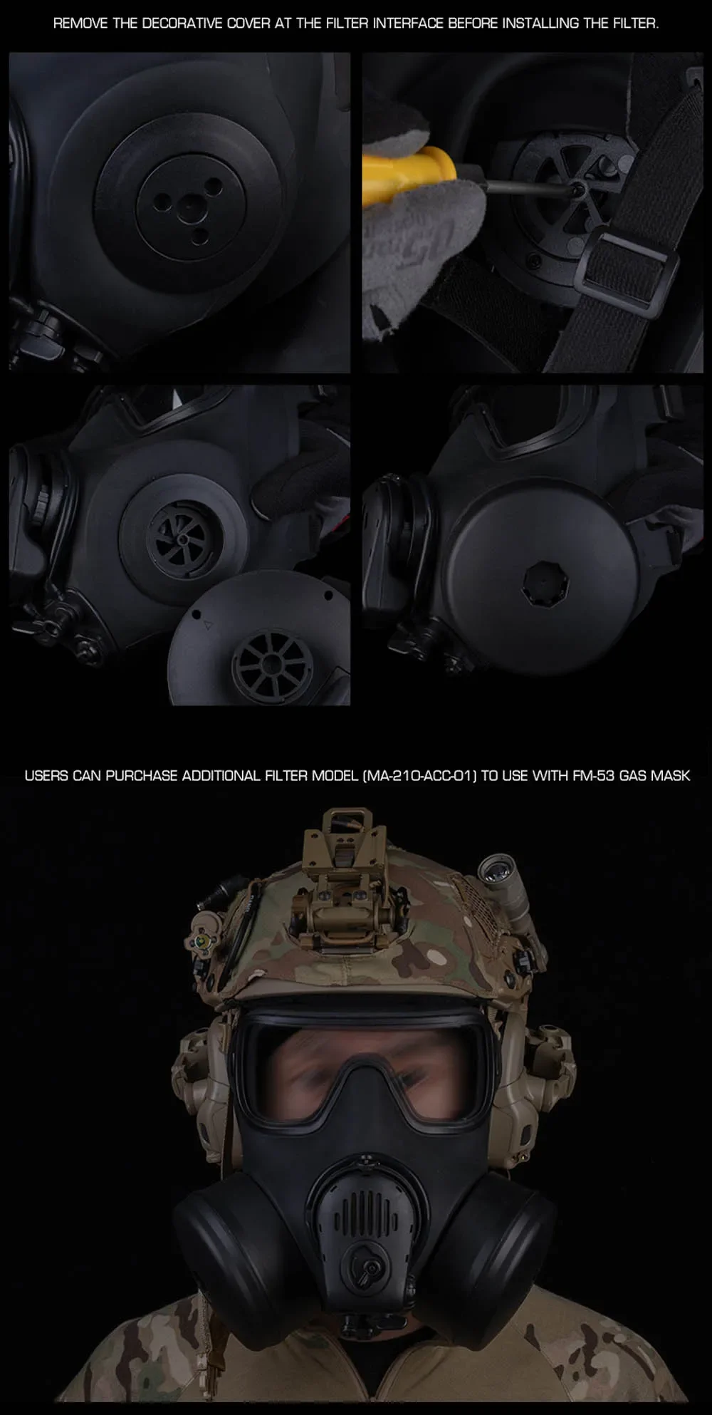 Máscara de Gas táctica FM-53, modelo simulado, máscara protectora de cara completa con filtro de ventilador, recipiente, comunicación de micrófono para Cosplay