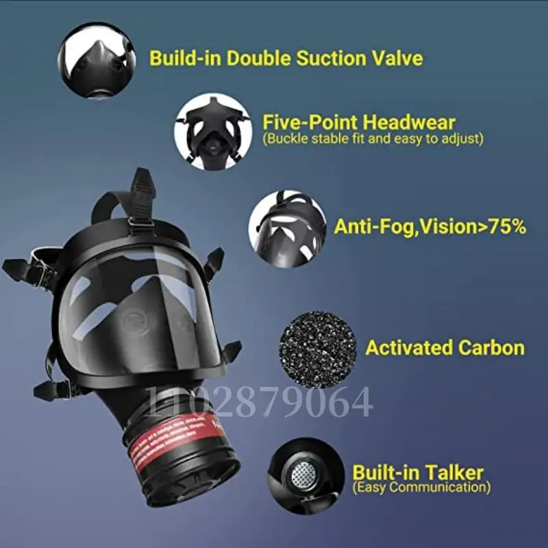 Potente filtración y ventilación: la campana de gas también está equipada con un recipiente de filtro de gas estándar de 40 mm de la industria y un gran puerto de aire para garantizar una respiración suave. Completamente superior a otras marcas de características de protección integrales, puede utilizar el filtro de radiación nuclear de algodón. La válvula de ventilación está ubicada centralmente, lo que reduce el calor y la humedad, reduce el riesgo de fatiga del usuario, fuerte succión y baja resistencia.