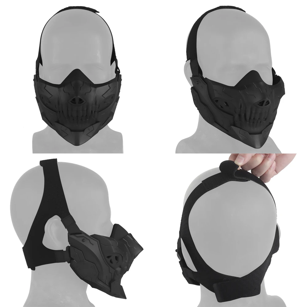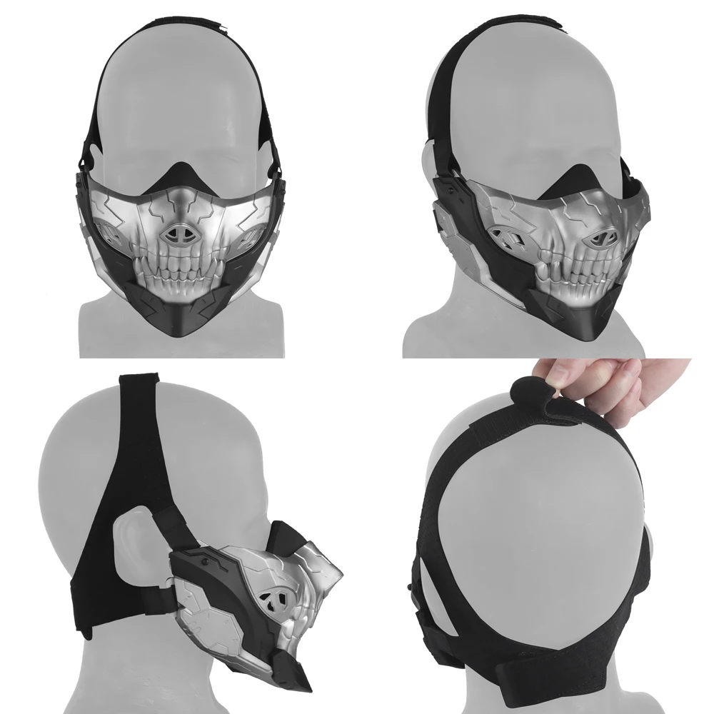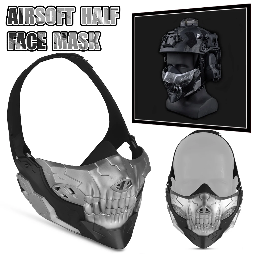 Máscara de gel de sílice de media cara con forma de calavera para airsoft Máscara de paintball táctica ajustable Máscaras geniales para cosplay de Halloween Para caza y tiro