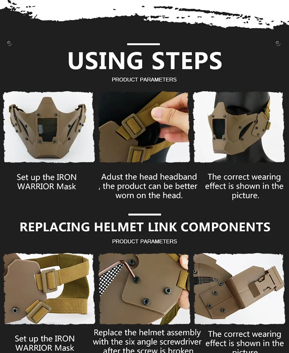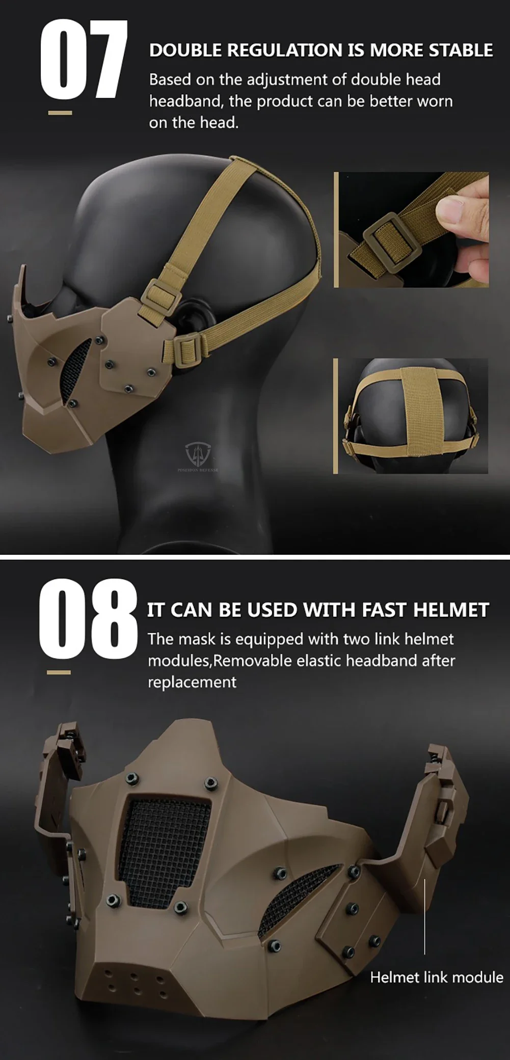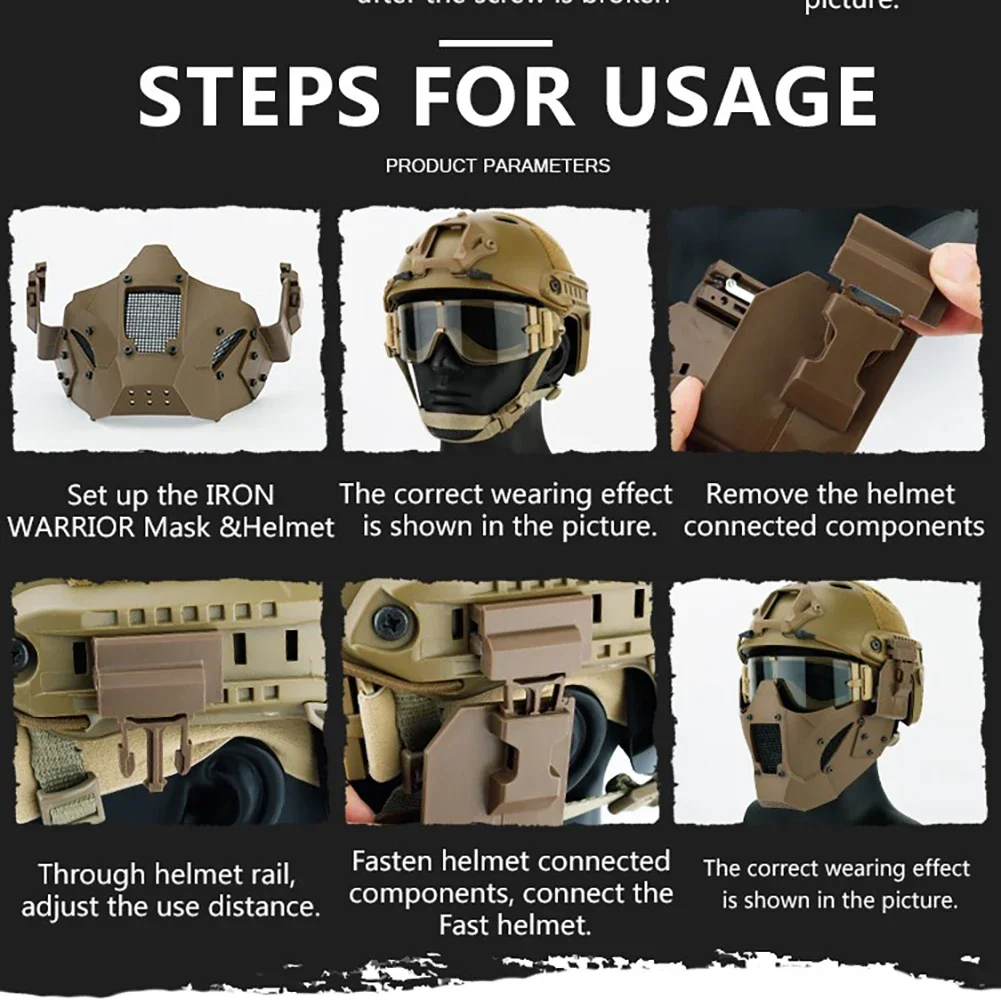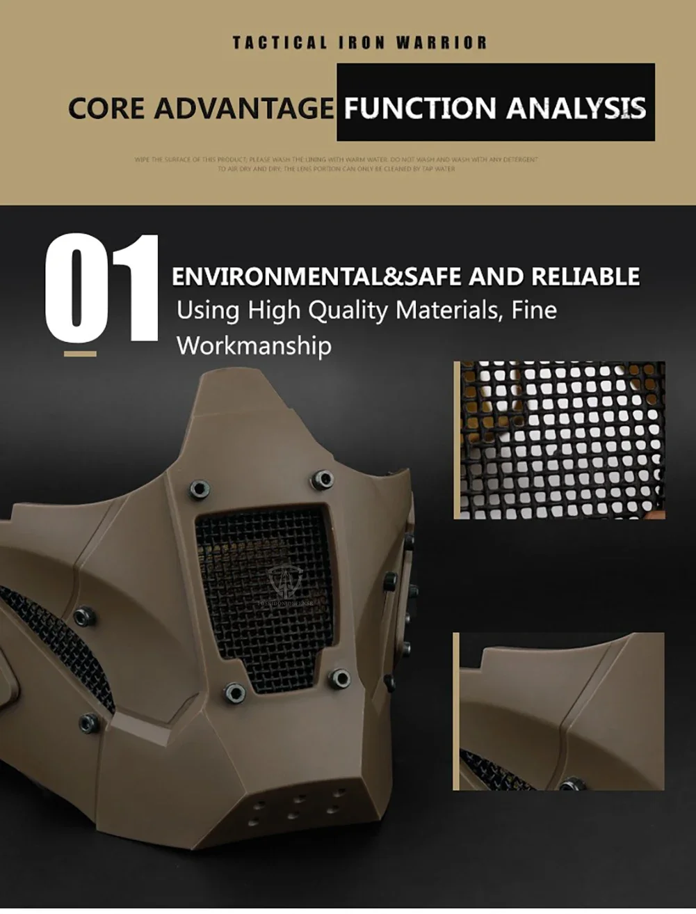 Máscara HALF FACE IRON WARRIOR Light Weitht resistente a impactos compatible con casco rápido