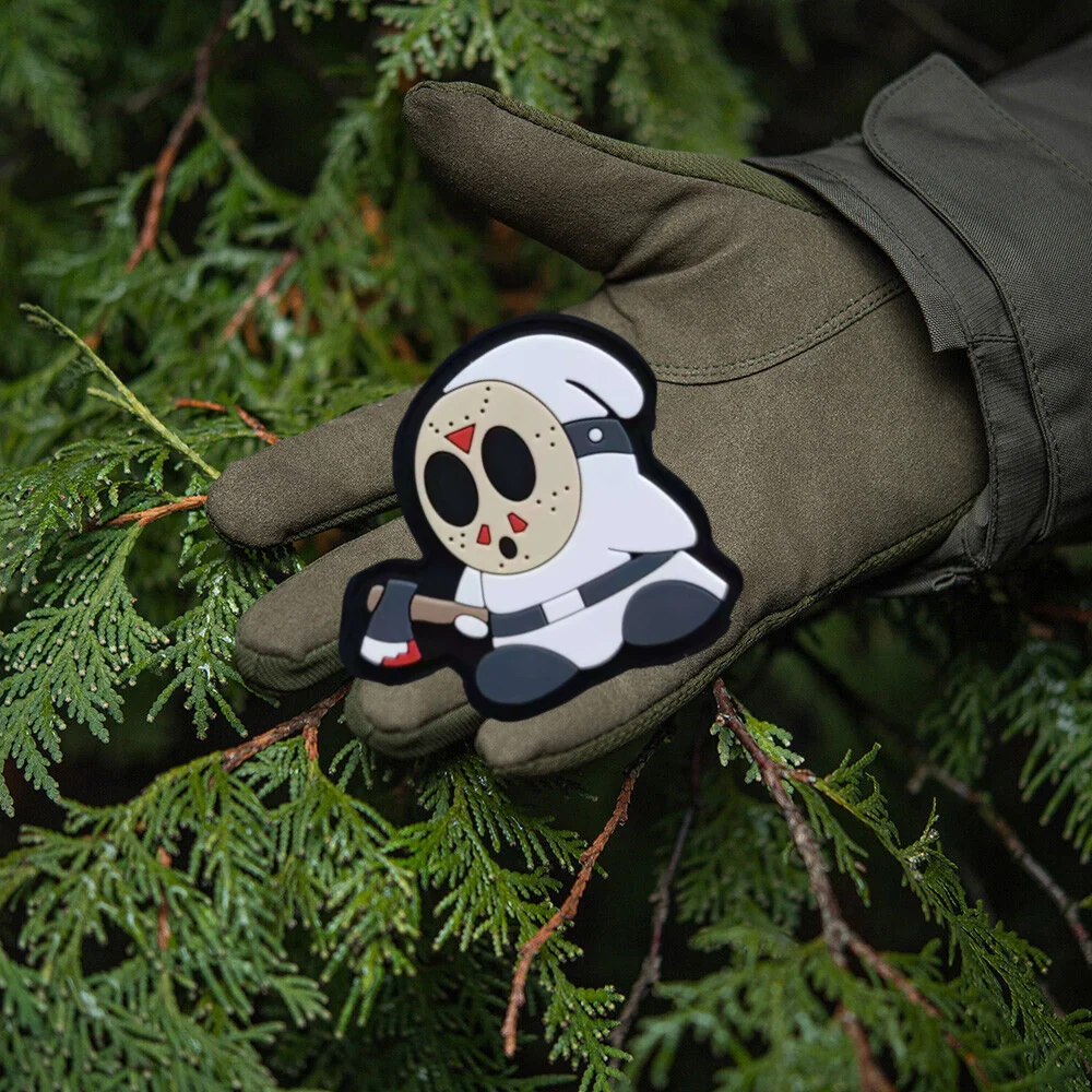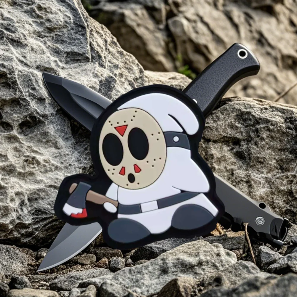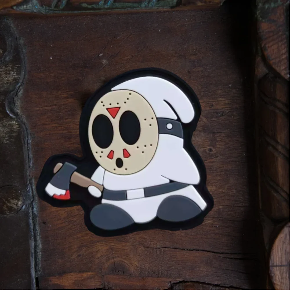 Máscara de Halloween fantasma con parche de hacha, Clip de PVC con gancho y bucle de dibujos animados, brazalete militar, insignia de moral, brazalete, pegatinas para mochila