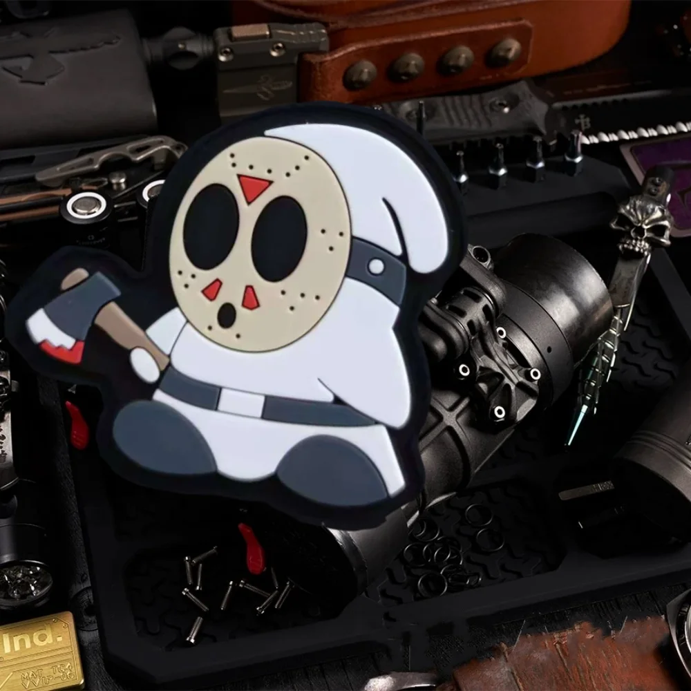 Máscara de Halloween fantasma con parche de hacha, gancho y bucle de dibujos animados, parche de PVC, brazalete, insignia de moral del ejército militar, brazalete, pegatinas para mochila