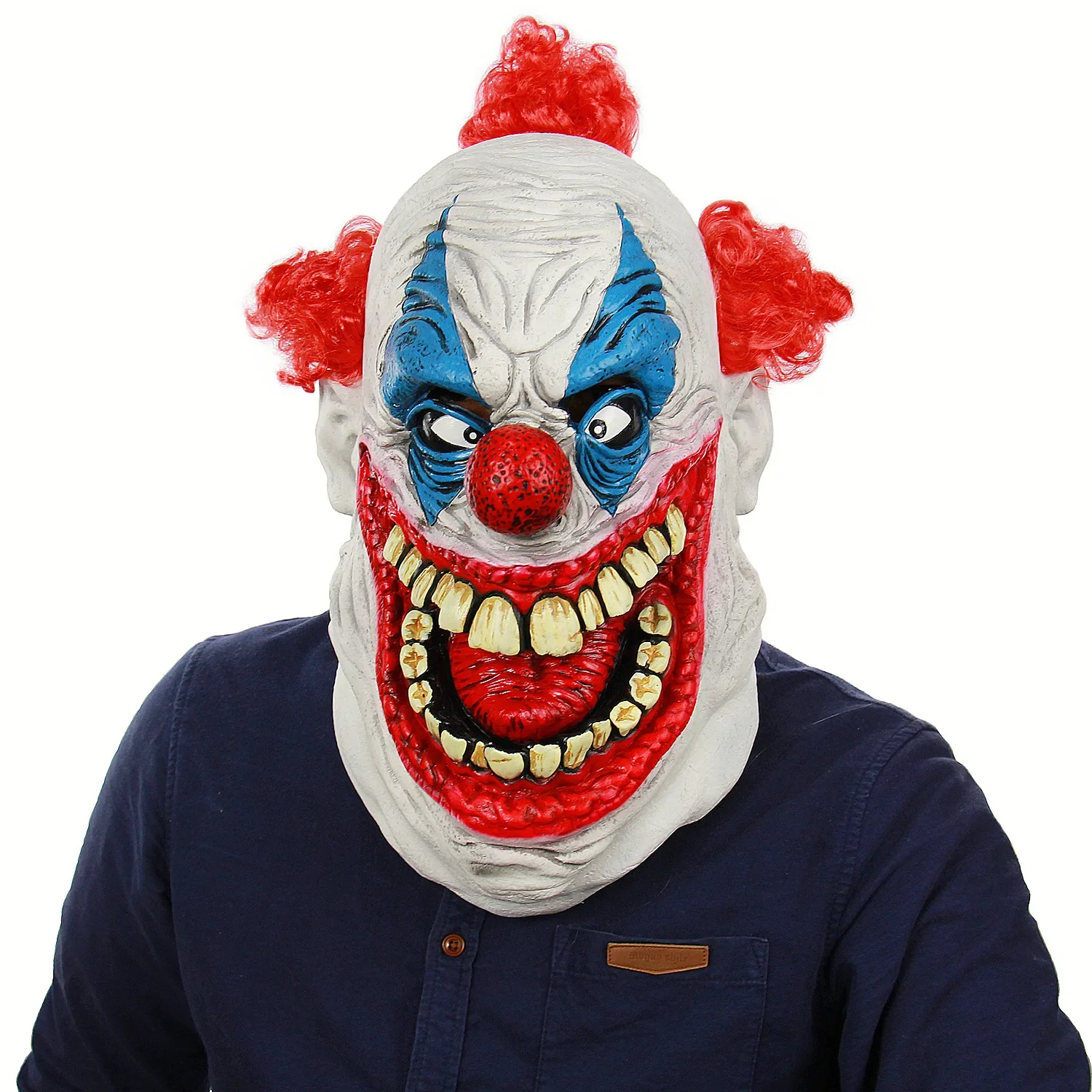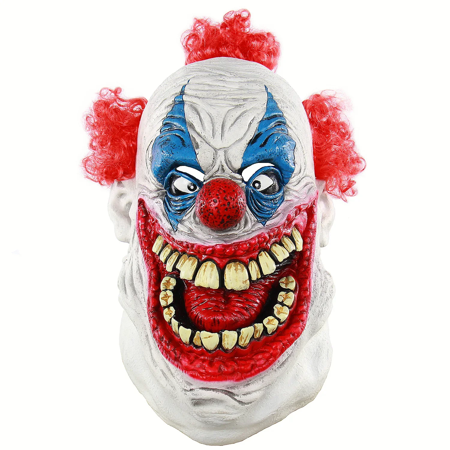 Máscara de Halloween, máscara de payaso de pelo rojo, Cosplay, rol de miedo, Joker de terror, casco de cara completa de látex, tocado de mascarada, accesorio de disfraz