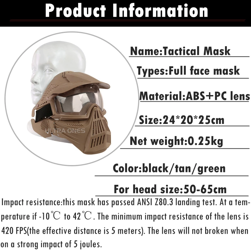 ● Nombre: máscara facial completa táctica