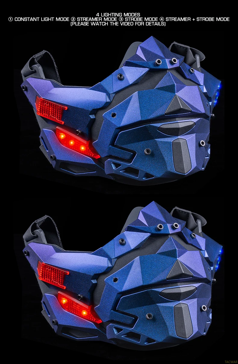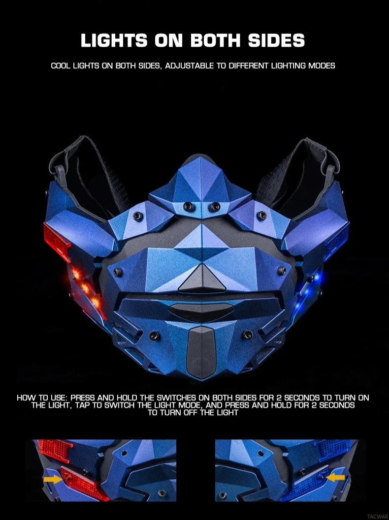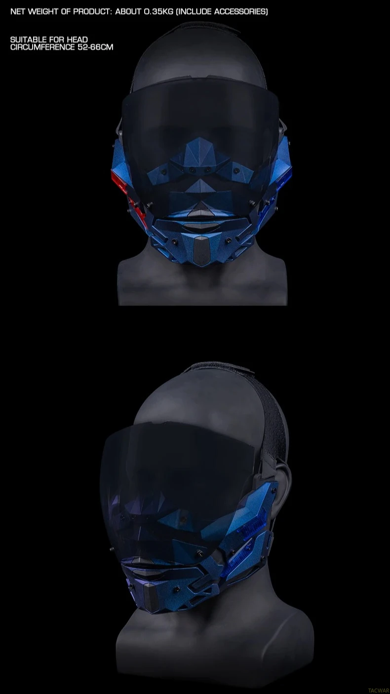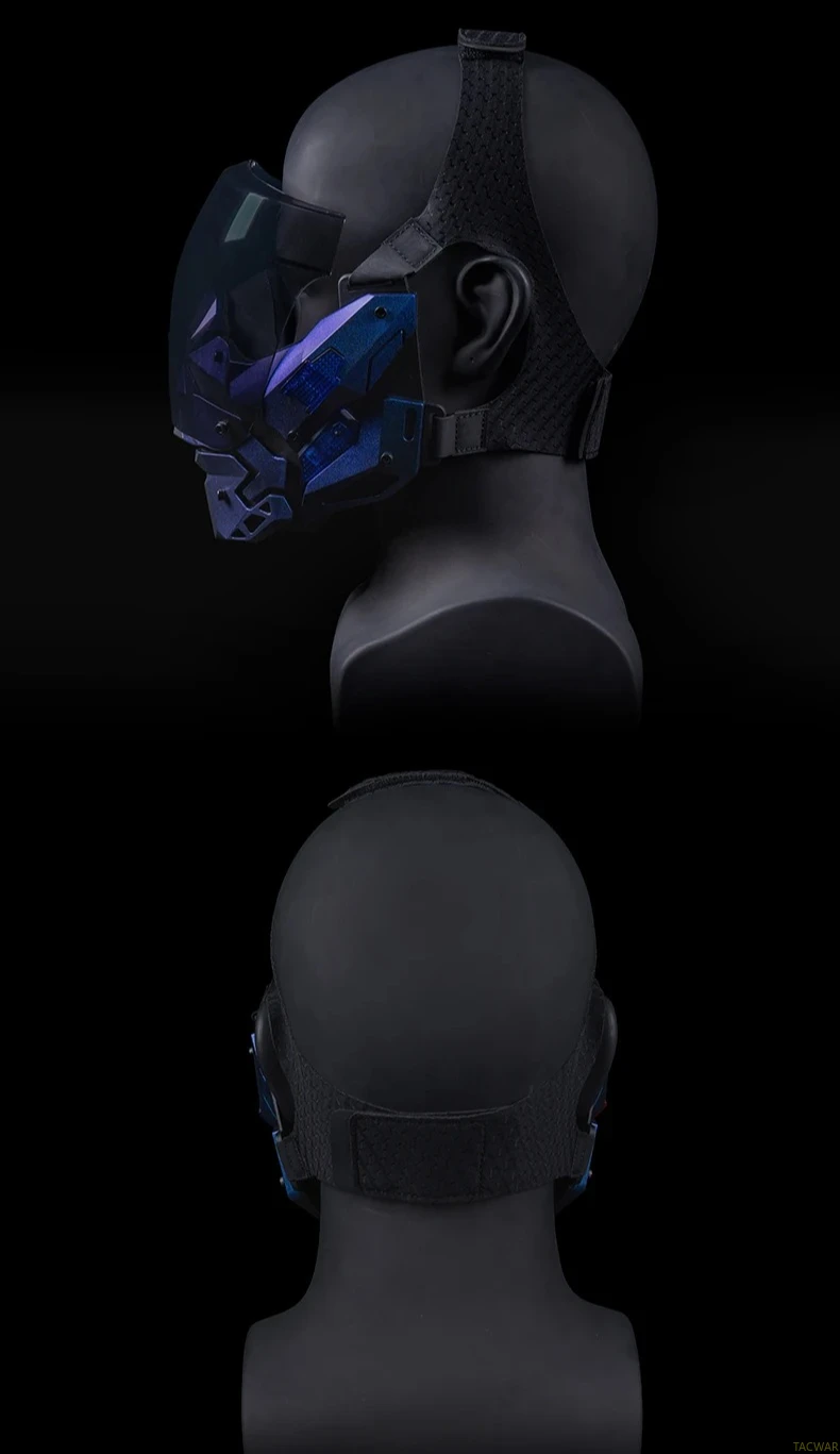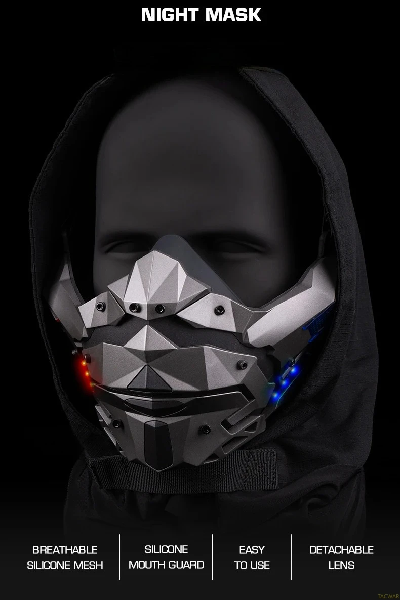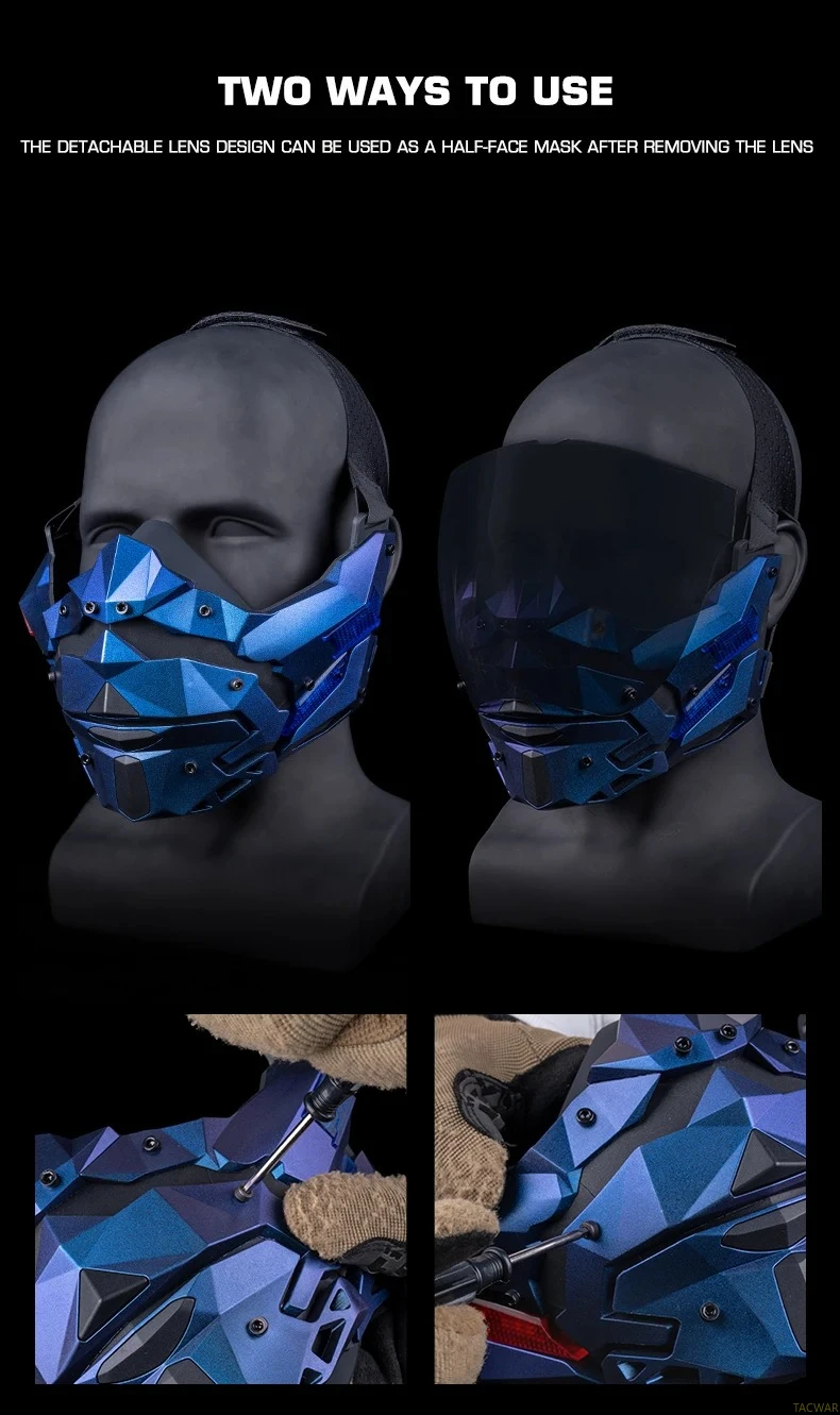 Máscara LED Cyberpunk para hombres, máscara facial desmontable para disfraz de Halloween, fiesta de vacaciones, película táctica Prors
