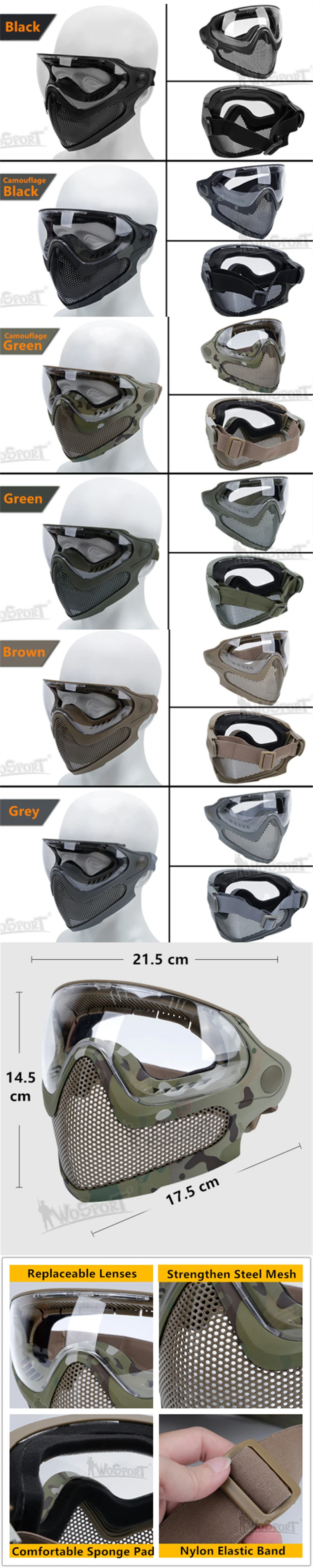 Máscara de malla de acero Airsoft, cara completa con gafas antiniebla, casco rápido a juego para disparar, juego de guerra, Paintball CS, equipo Airsoft