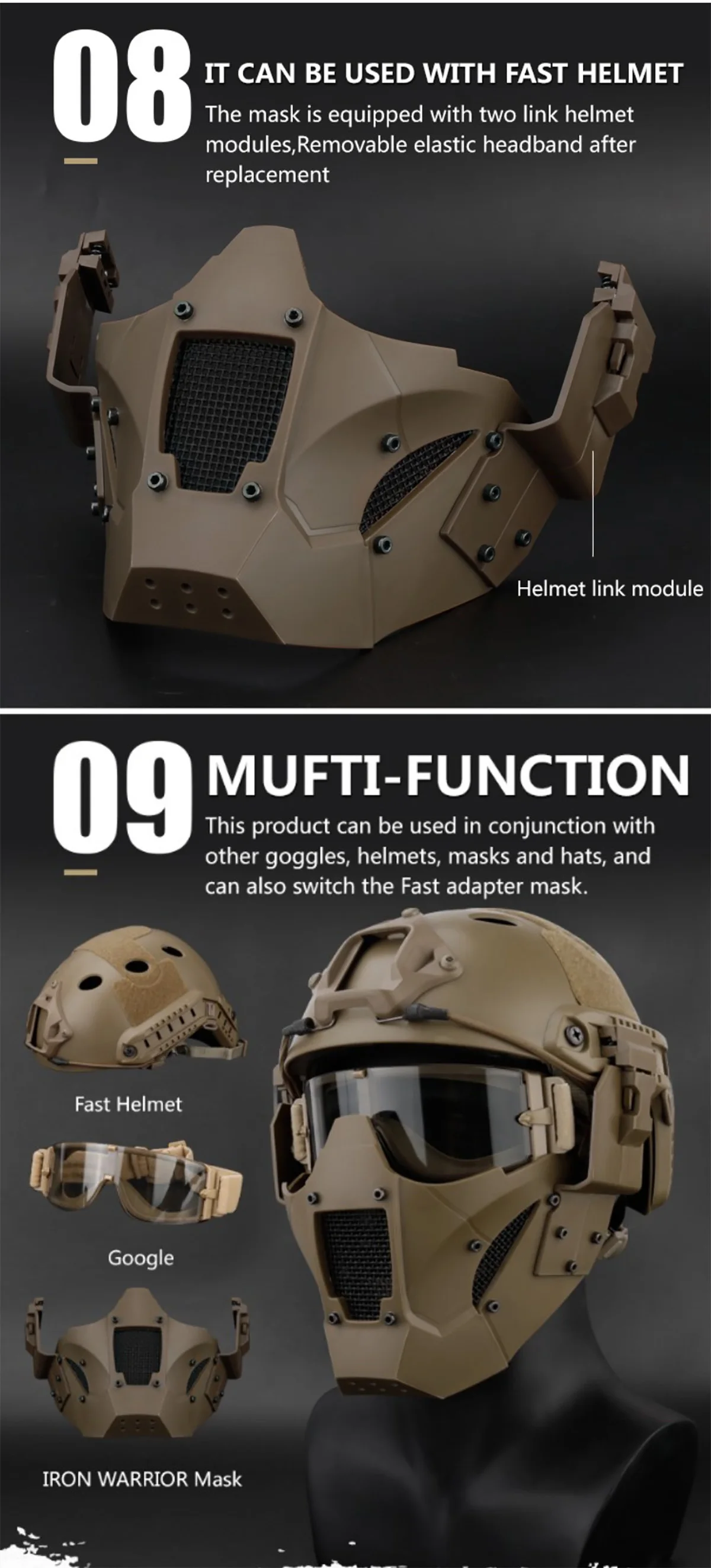 ➤ Dos formas de usar la máscara usando la banda elástica ajustable o conectando la máscara al conector de riel accesorio del casco FAST.