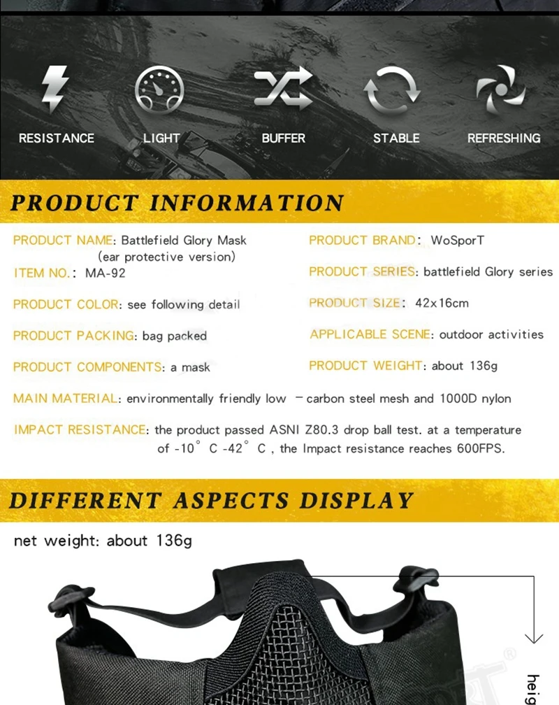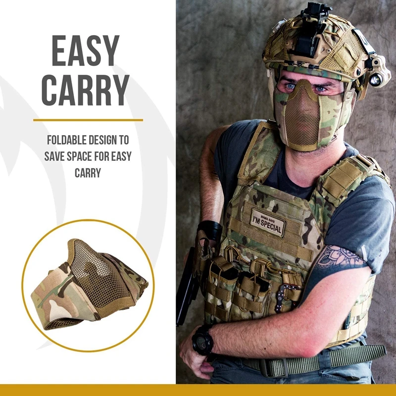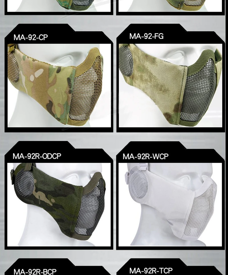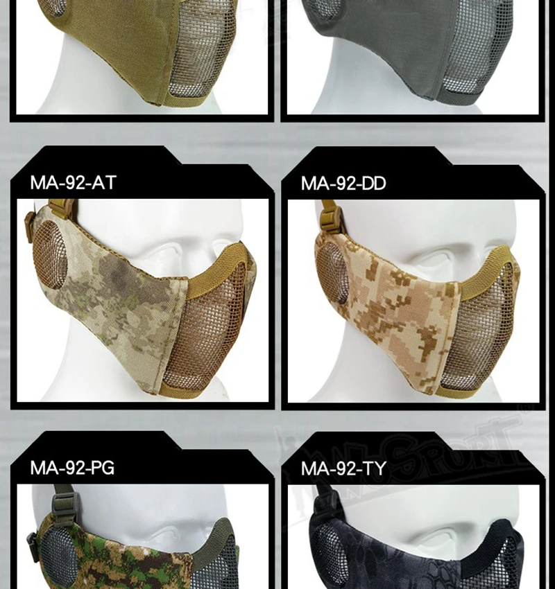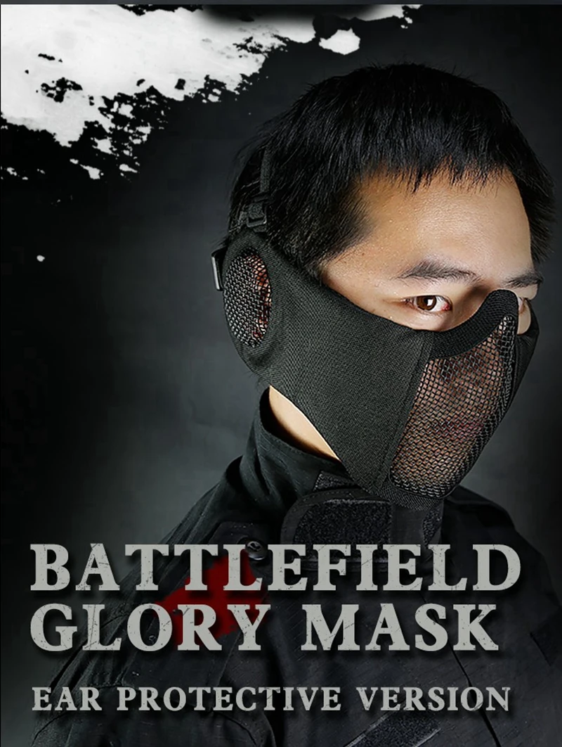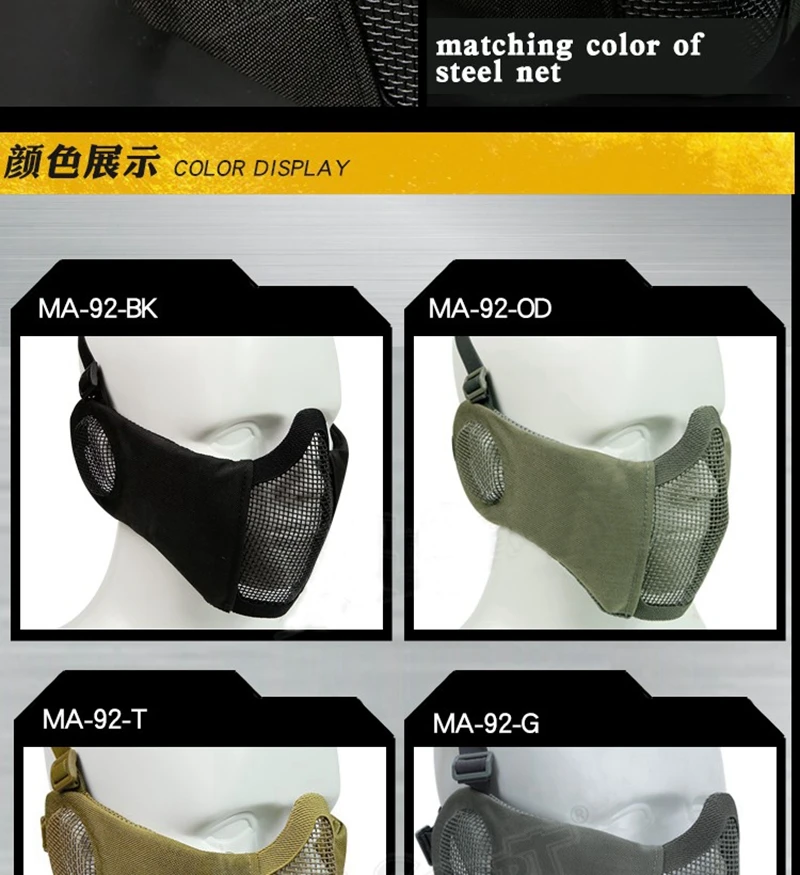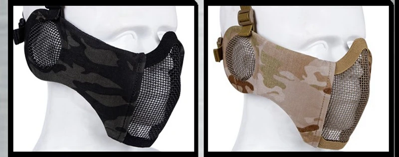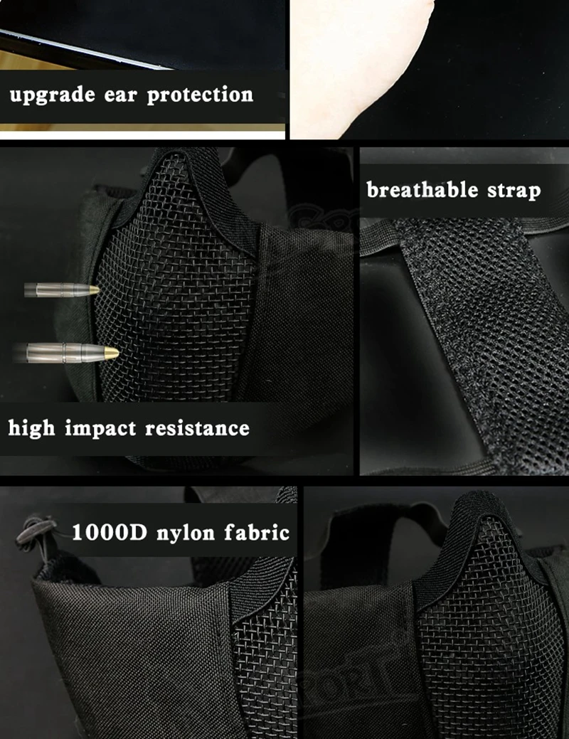 Sobre el artículo:Máscara plegable: protector de malla para los oídos con correas ajustables, ideal para cerillas CQB