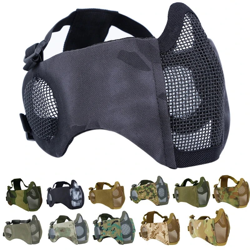 Sobre el artículo:Máscara plegable: protector de malla para los oídos con correas ajustables, ideal para cerillas CQB