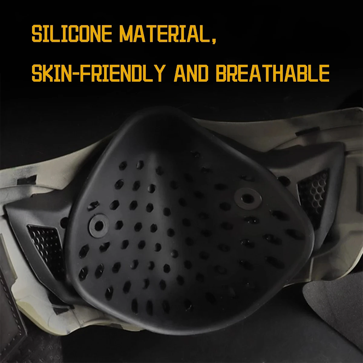 Máscara de malla de media cara para Airsoft Máscara de gel de sílice transpirable con protección para las orejas Para CS, caza, paintball, tiro, Halloween, cosplay