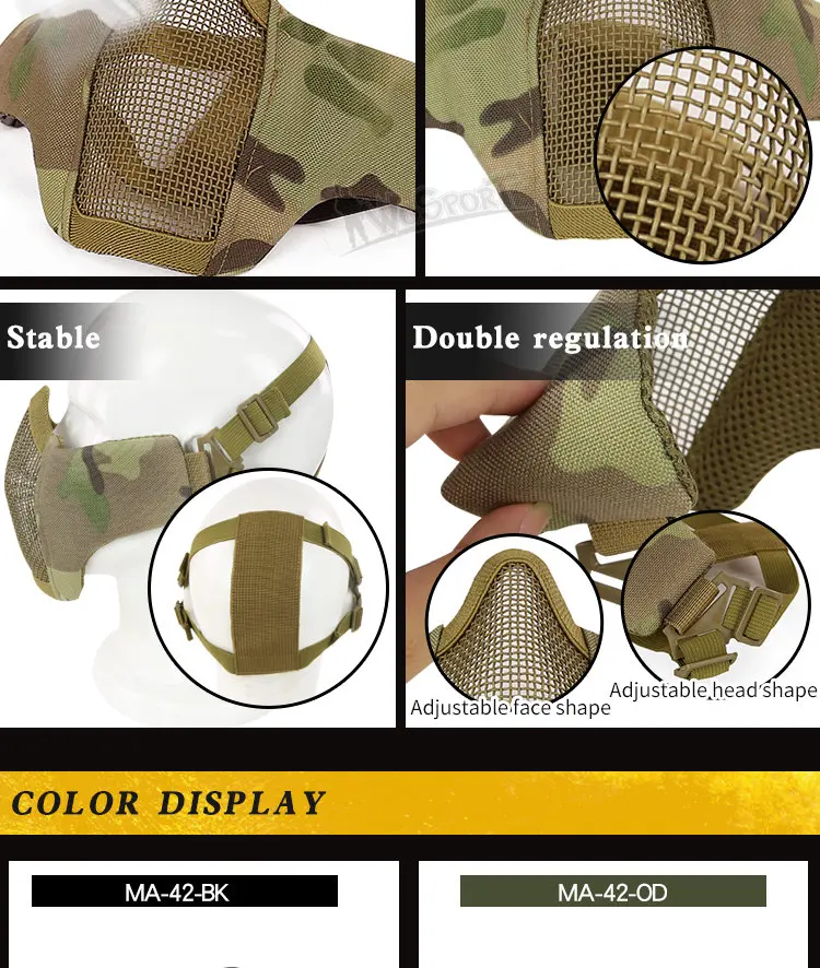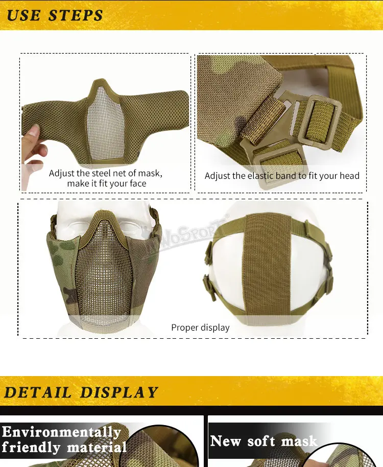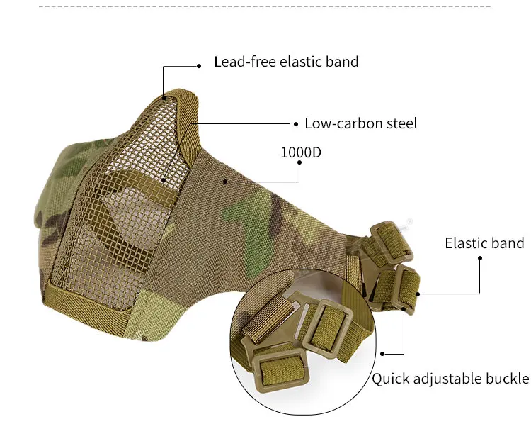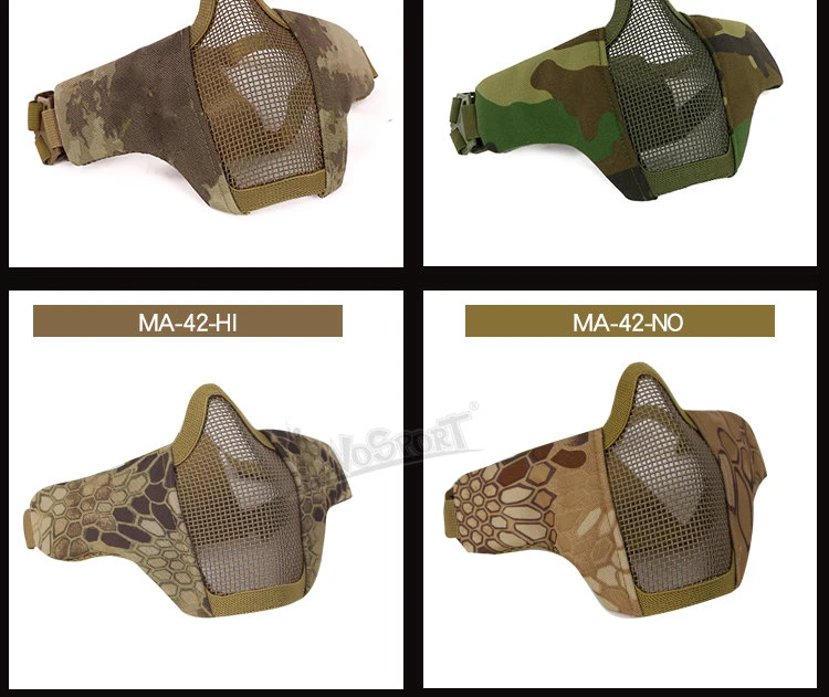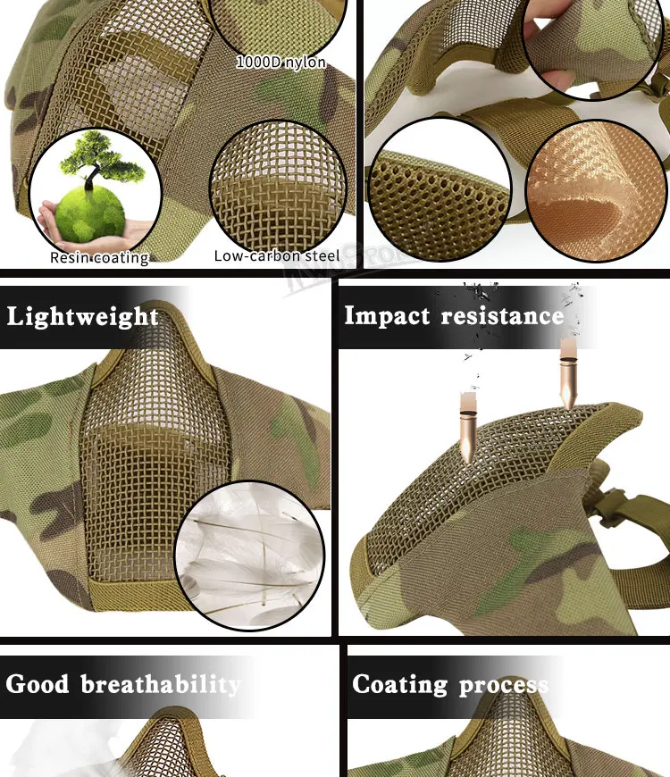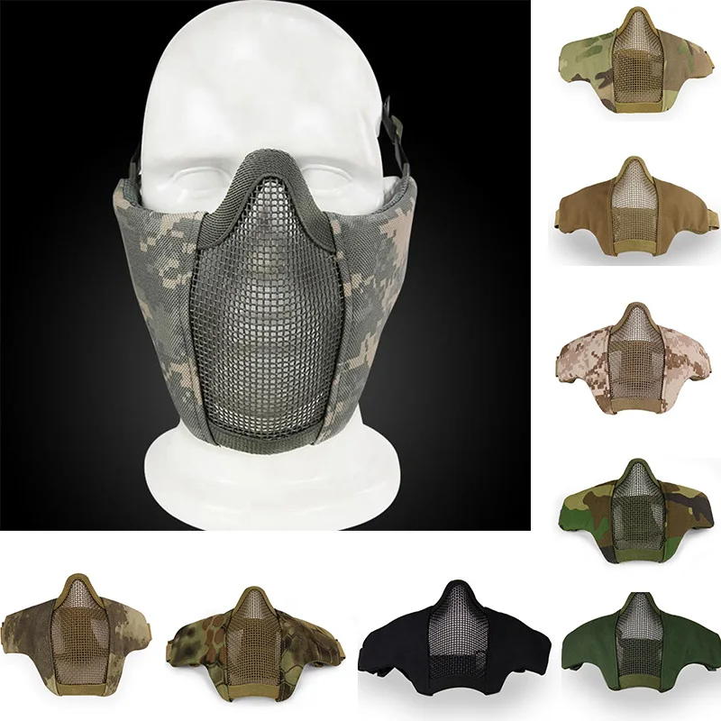 Máscara de media cara Airsoft con malla de red de acero metálico, máscara táctica para paintball, caza, ciclismo, transpirable, juego de guerra CS