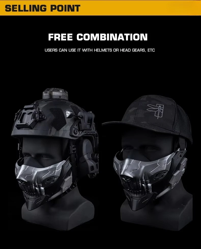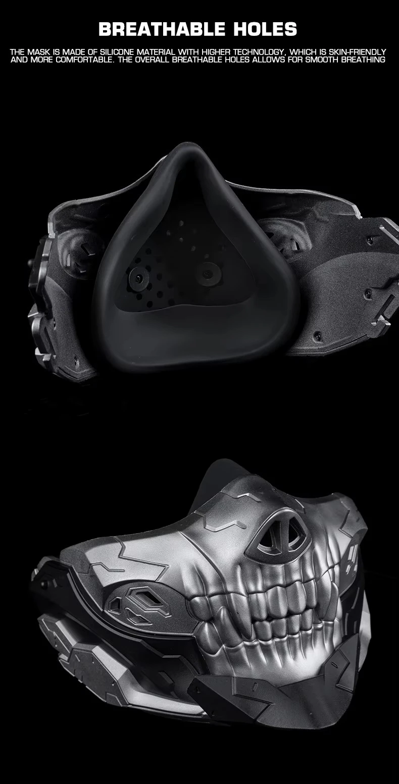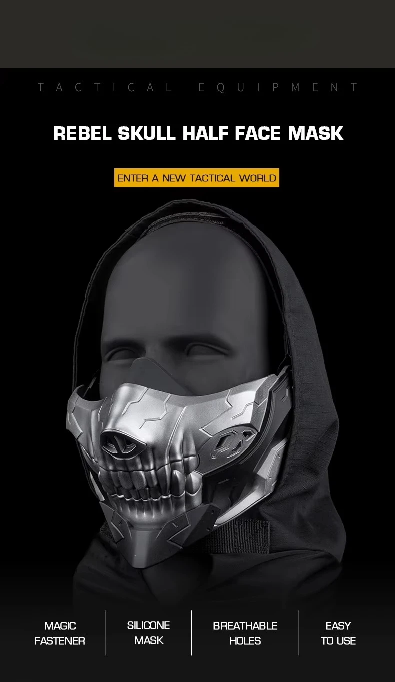Máscara de media cara de calavera Rebel con agujeros transpirables para CS, máscara de Cosplay para deportes al aire libre, accesorios de caza
