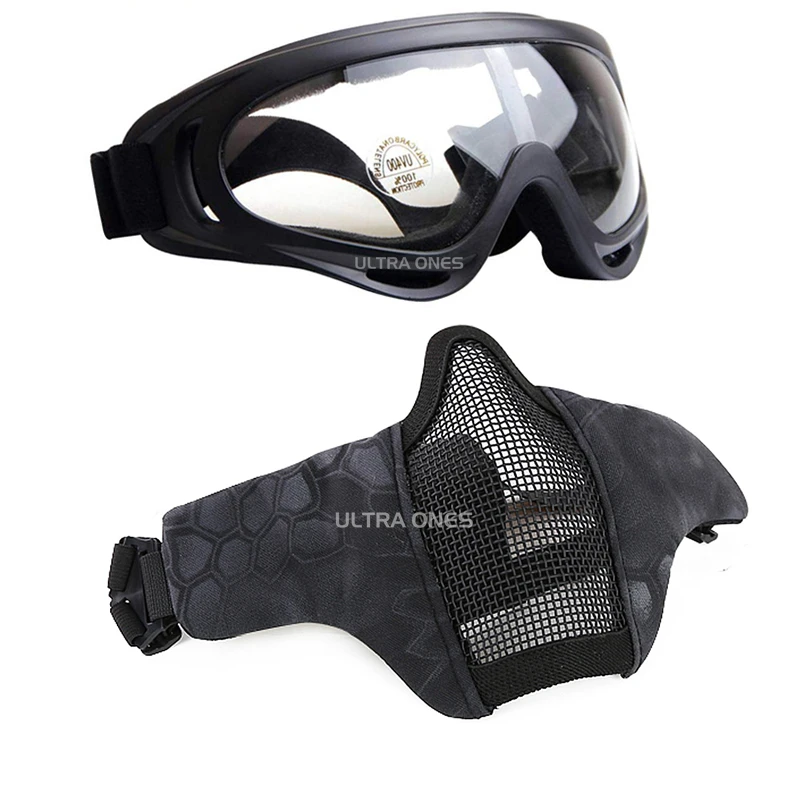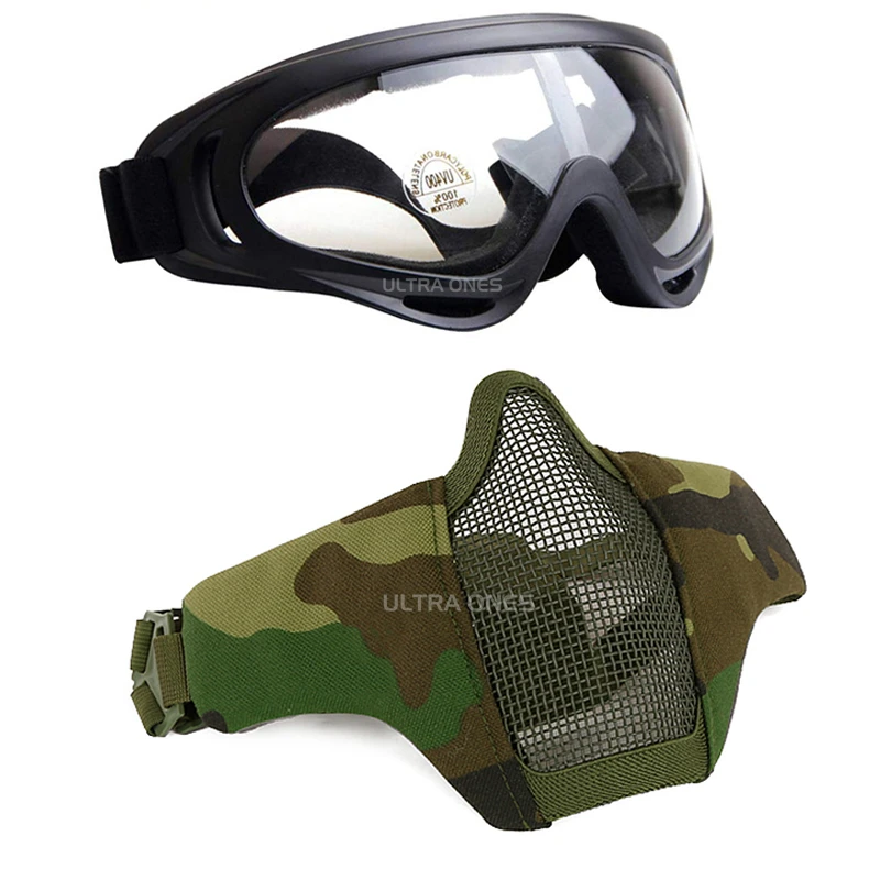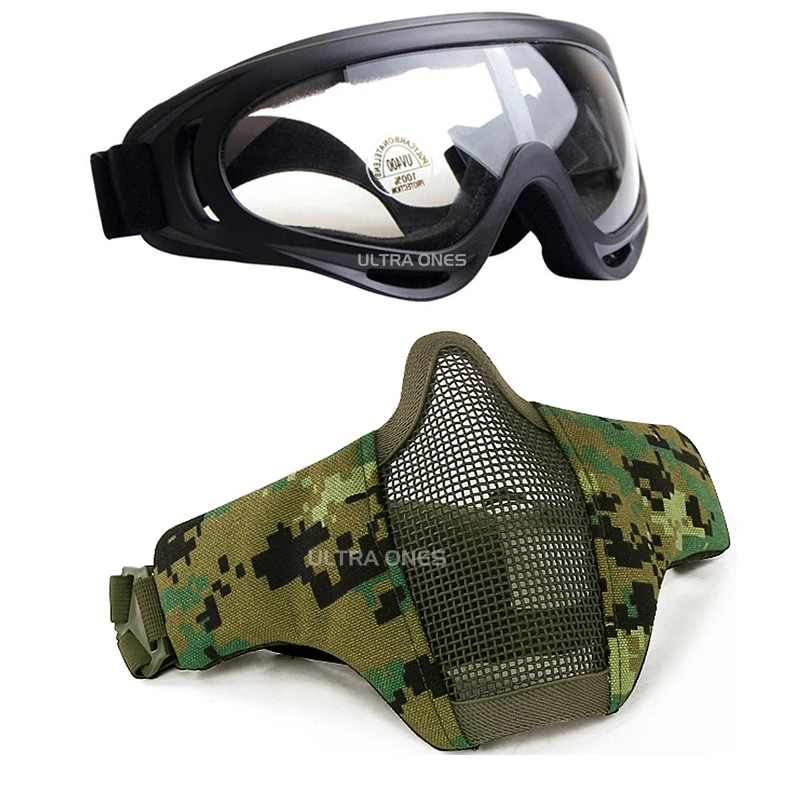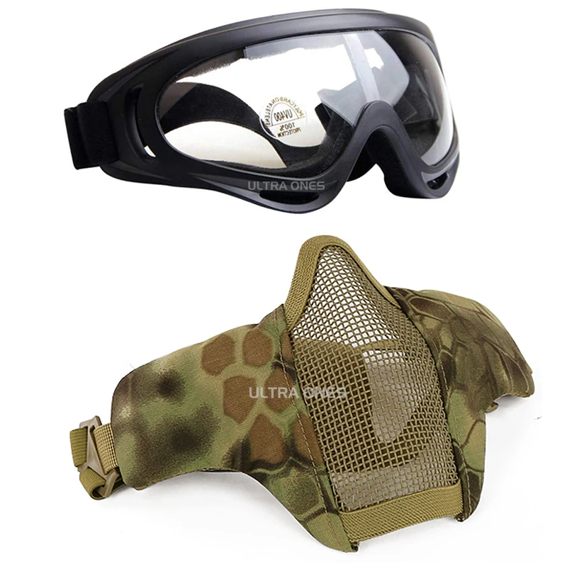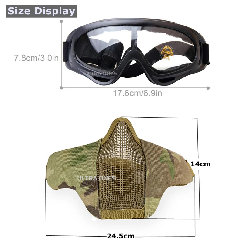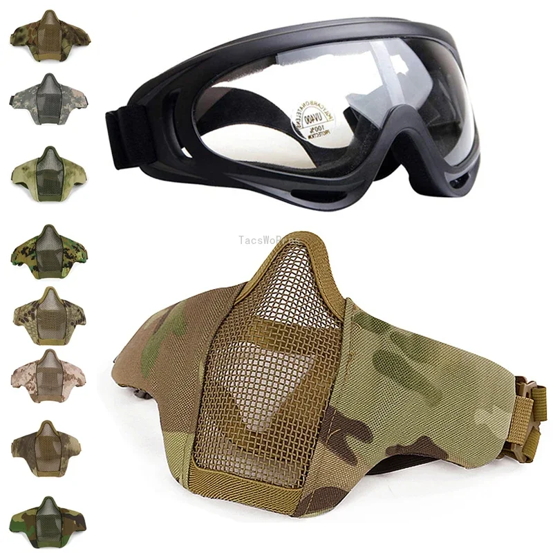 Juego de media máscara y gafas tácticas: máxima protección contra impactos