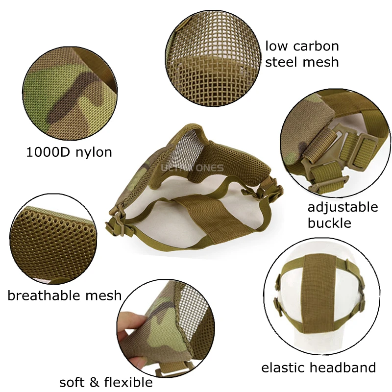 ⚡ Malla de acero transpirable– Ajustable para un ajuste facial perfecto