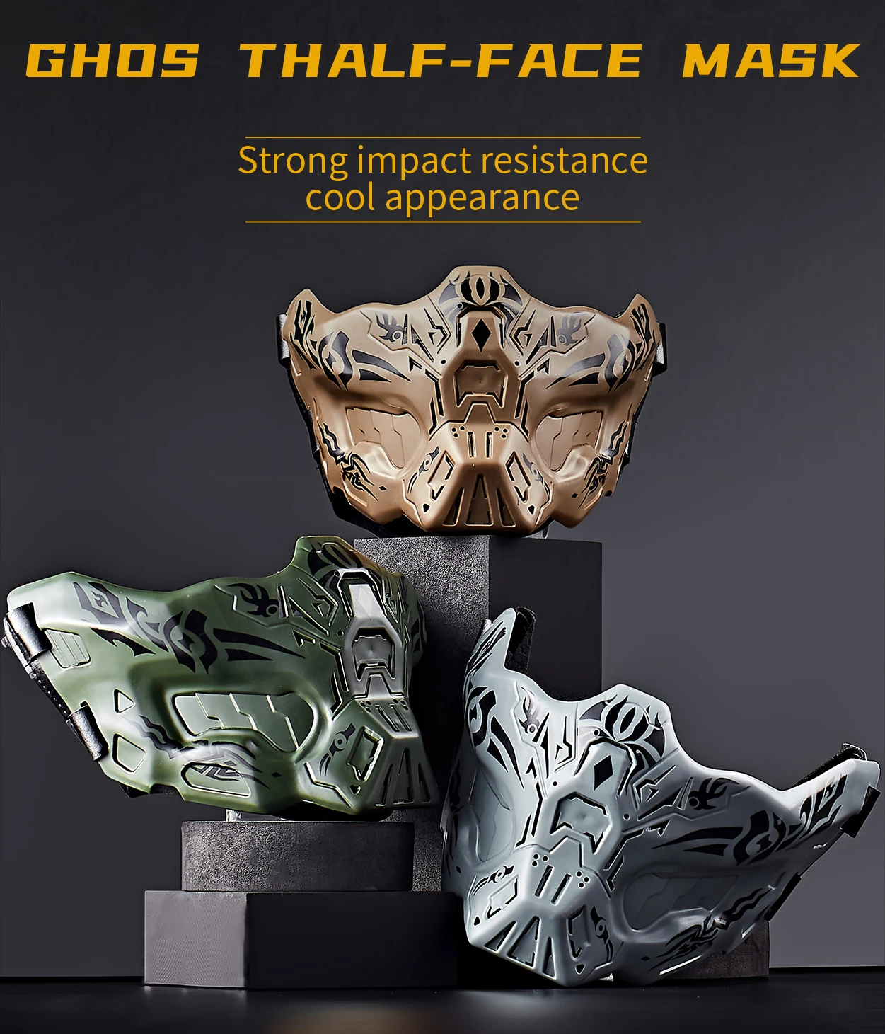 Máscara de media cara fantasma con máscara protectora de silicona táctica de media cara para caza CS Cos máscaras de Paintball de Halloween