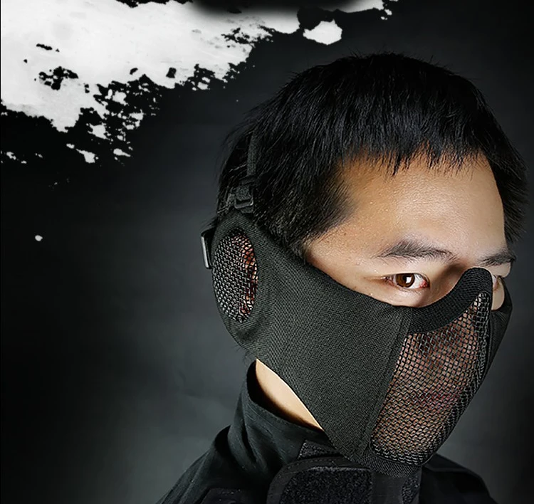 Airsoft media cara malla de acero protectora bajo en carbono Paintball tiro táctico CS Wargame protección facial