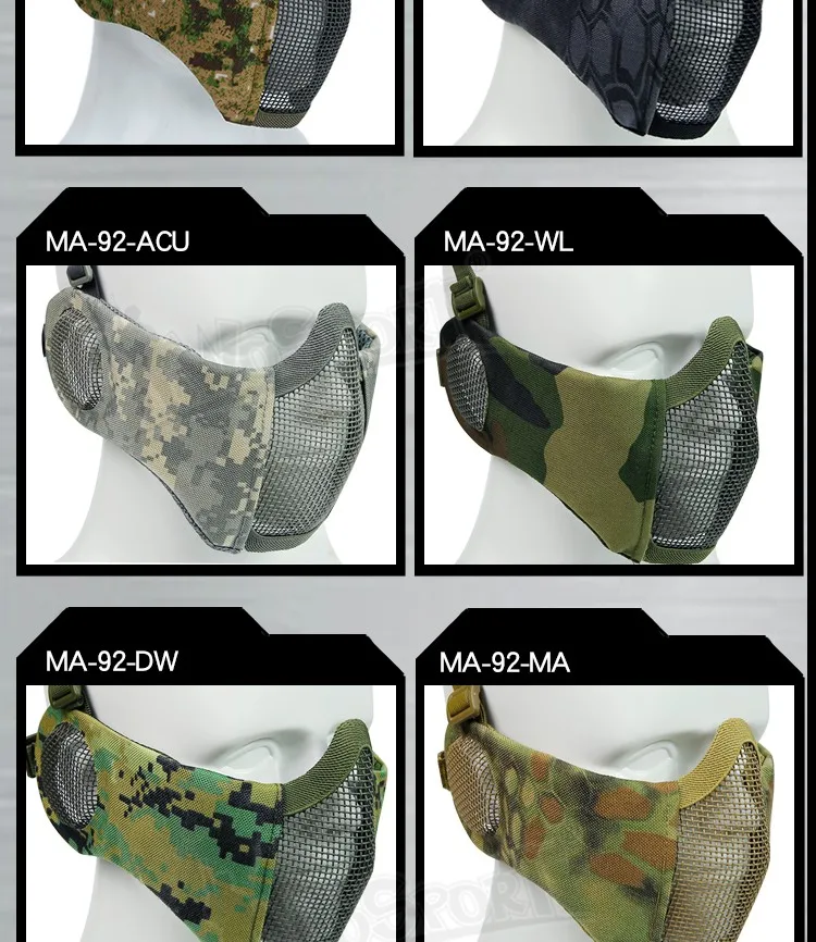 3. Protector de oreja de malla con correas ajustables.Traje para airsoft BB gun close quarter Battle Cosplay y fiesta.