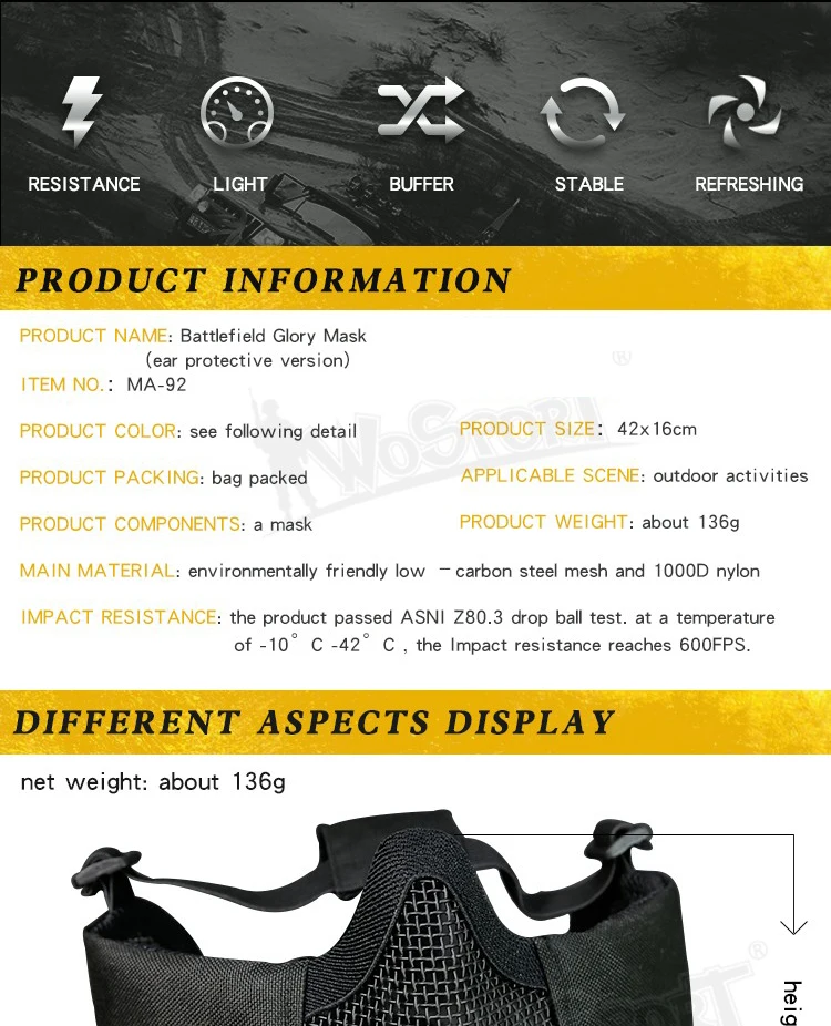 Nombre del producto: Máscara táctica (versión protectora de oídos)